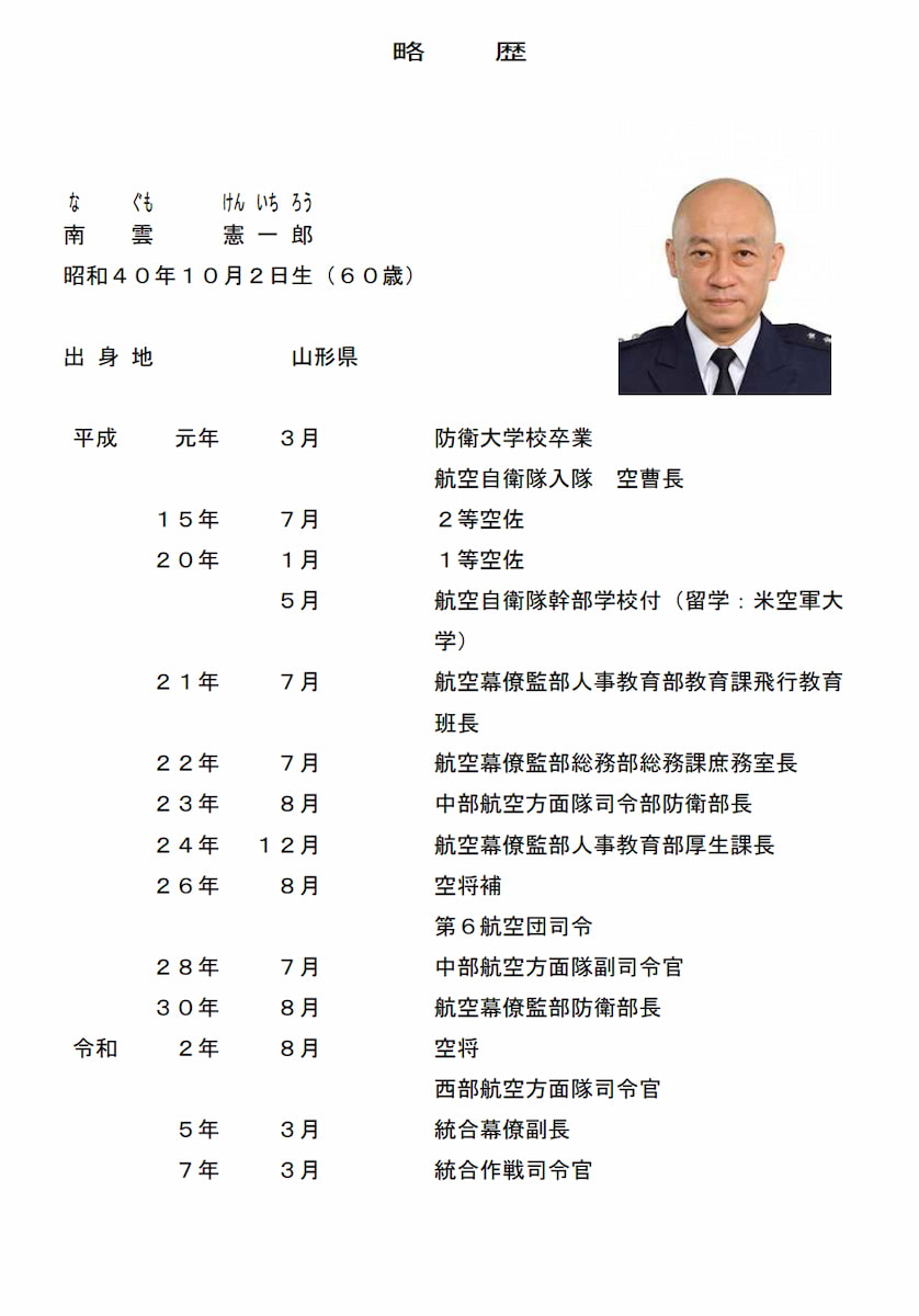 - 人事発令 令和8年3月23日付け、内閣承認人事(海自1名、空自6名)
