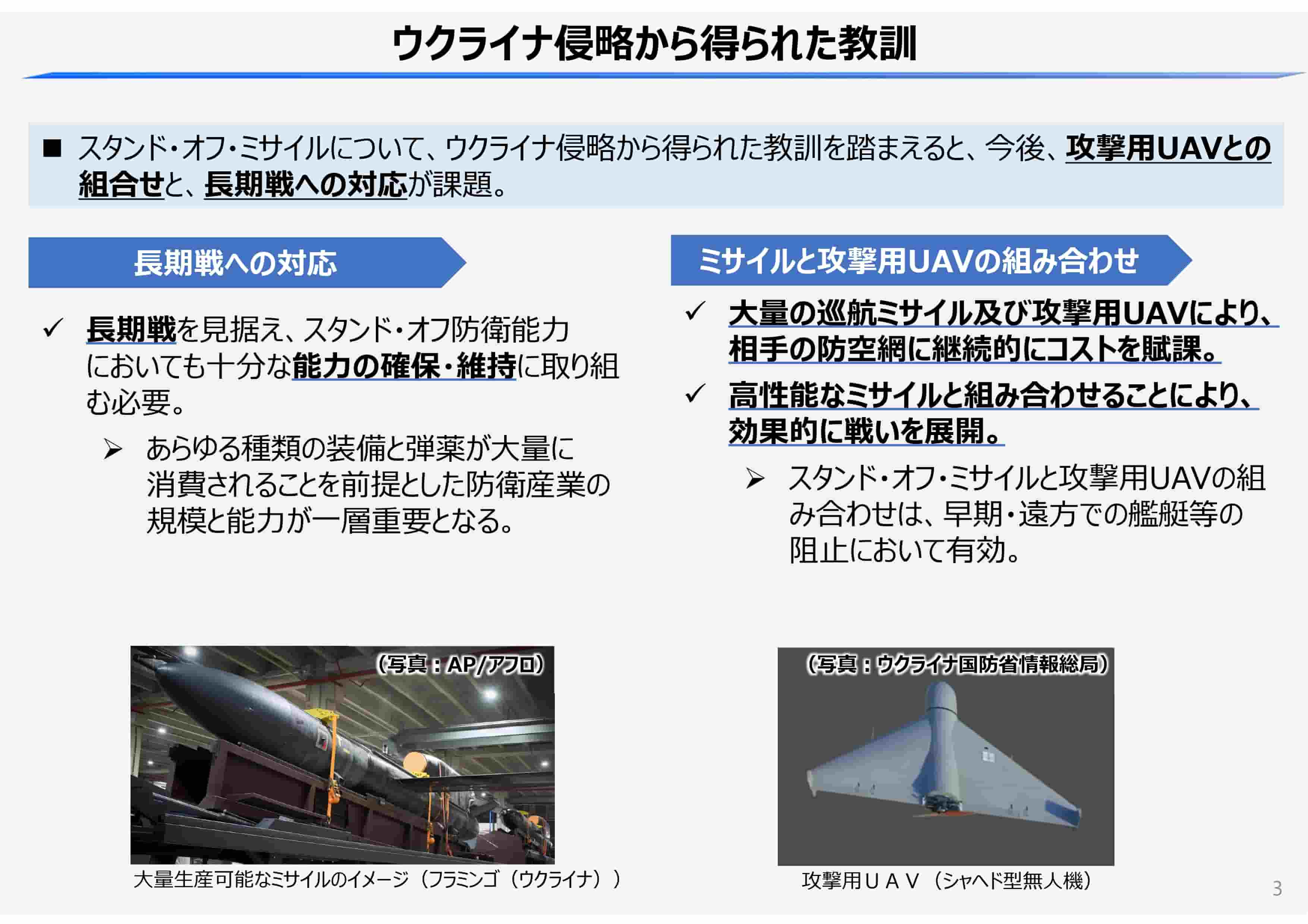 これについては、東西南北、それぞれ約3000キロに及ぶ我が国の領域を守り抜くためには、我が国に侵攻してくる敵の艦艇や航空機を可能な限り遠方で阻止・排除することが不可欠です。