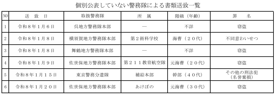 (2)個別公表していない警務隊による書類送致一覧
