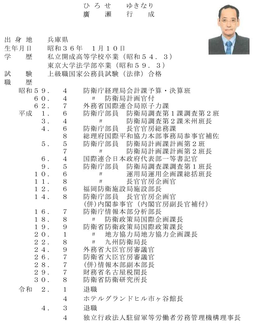 廣瀨行成(独立行政法人駐留軍等労働者労務管理機構理事長)