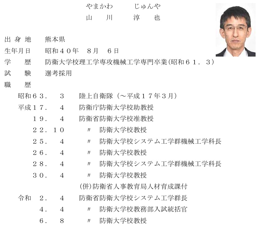 防衛教官 山川淳也(防衛大学校システム工学群 機械工学科教授)