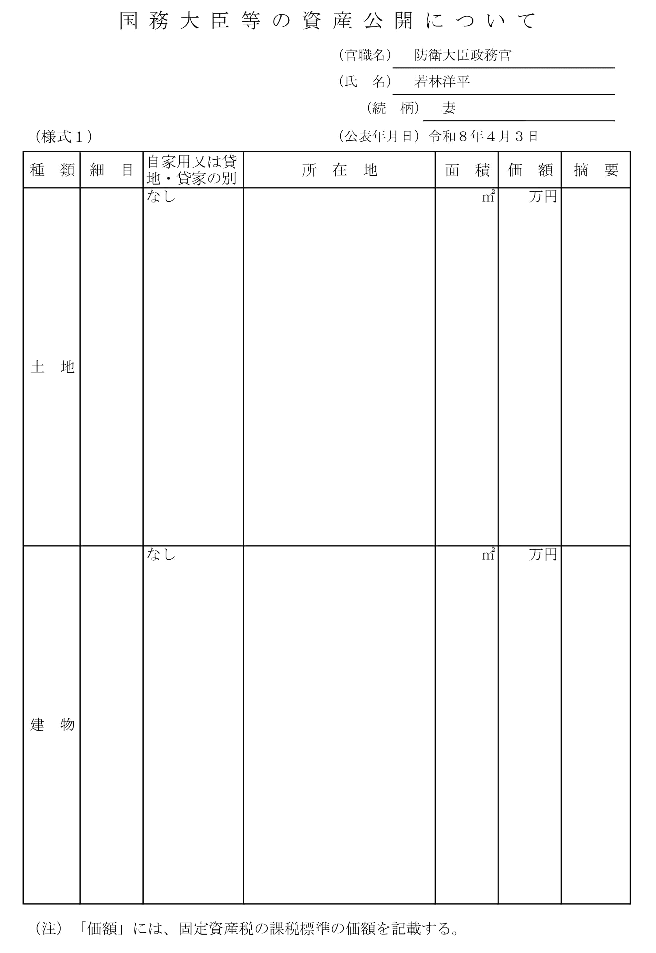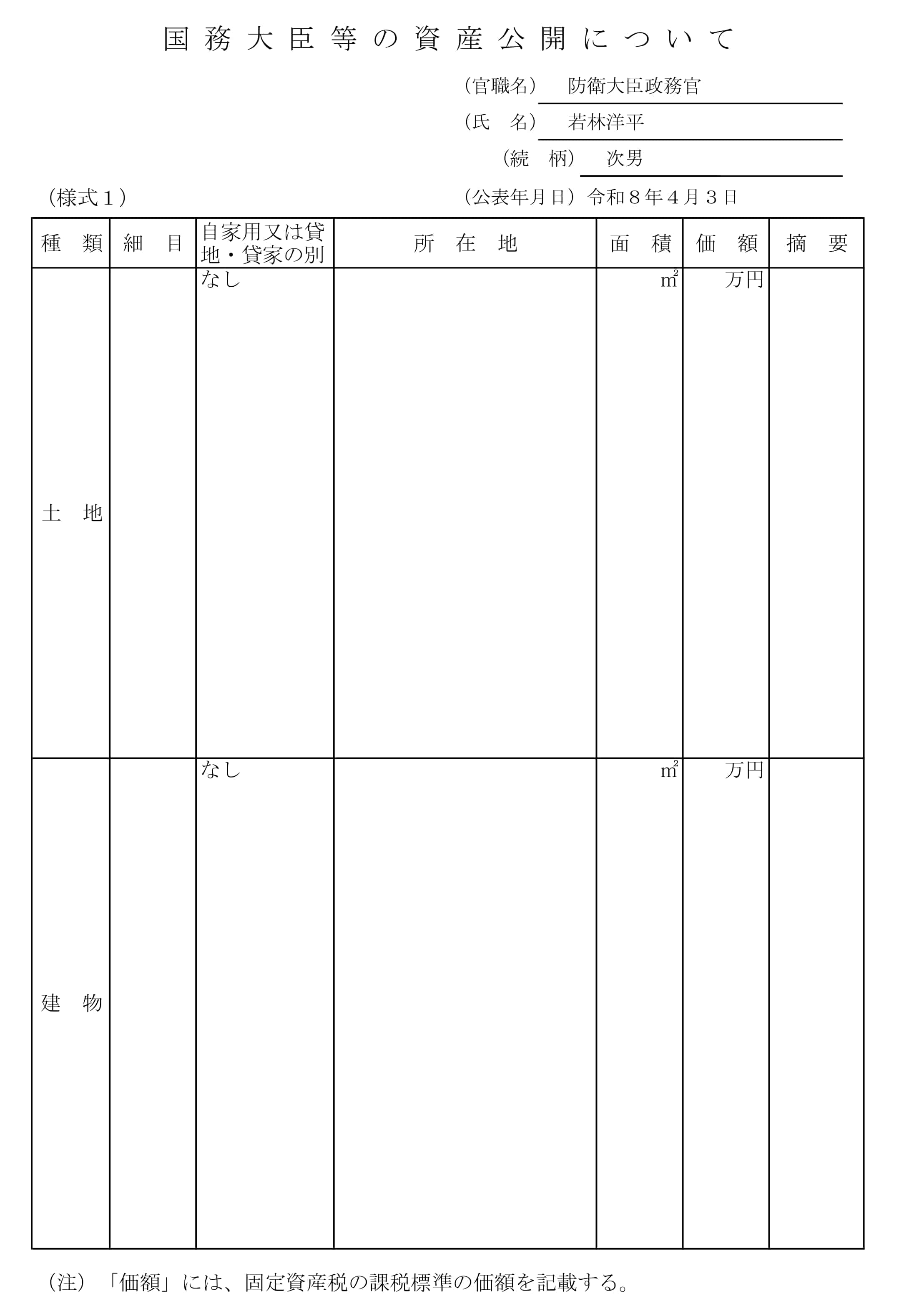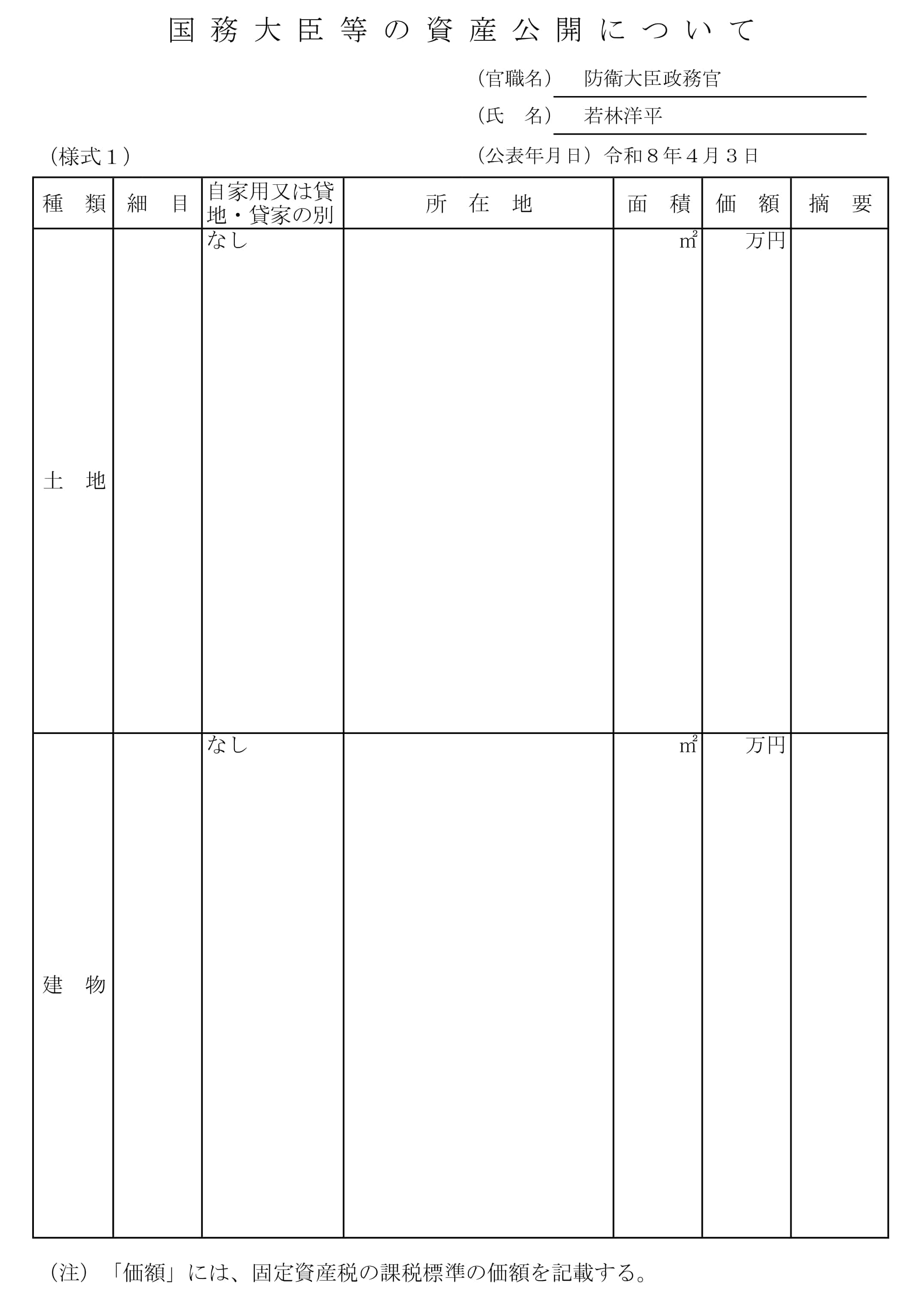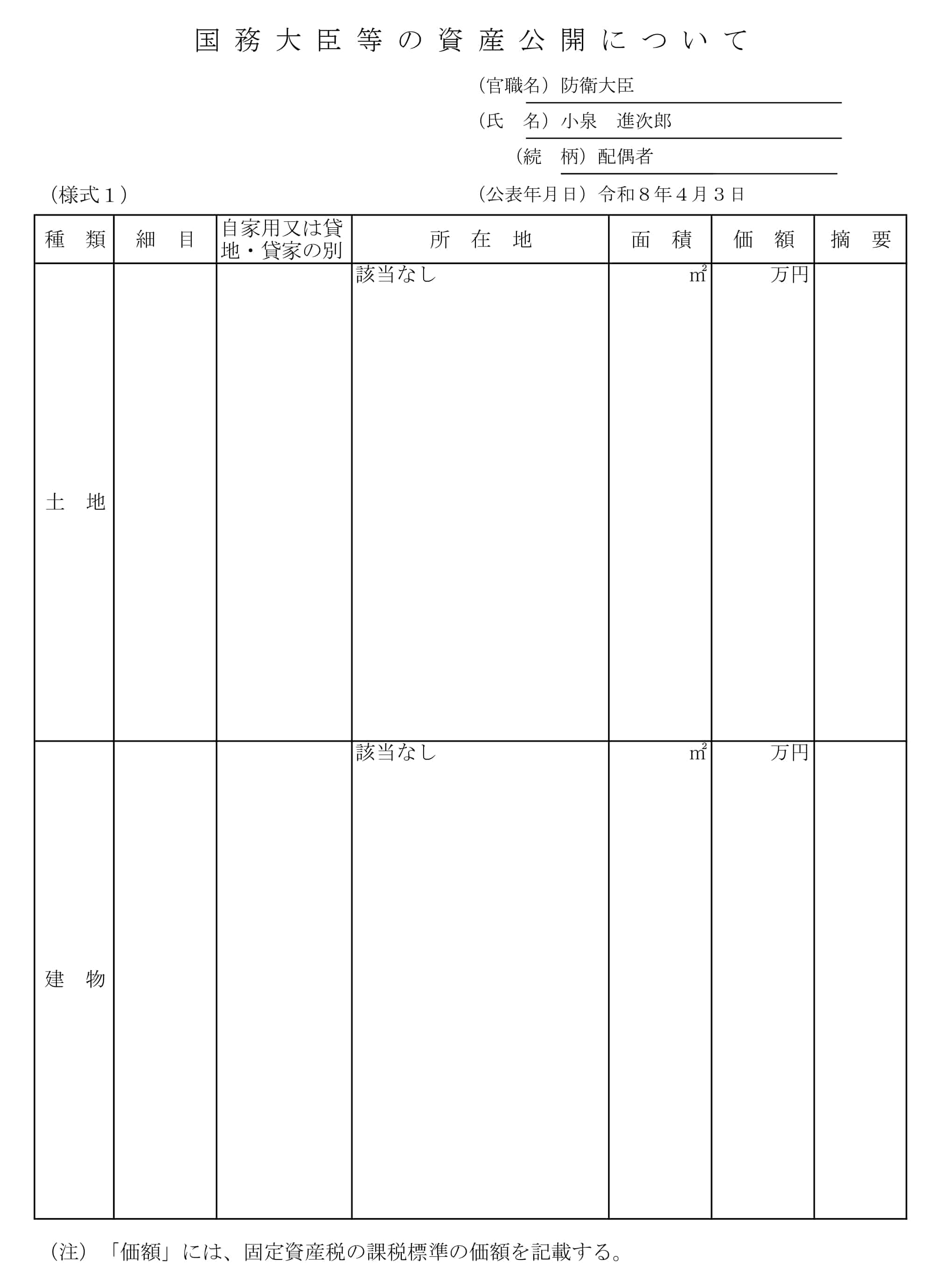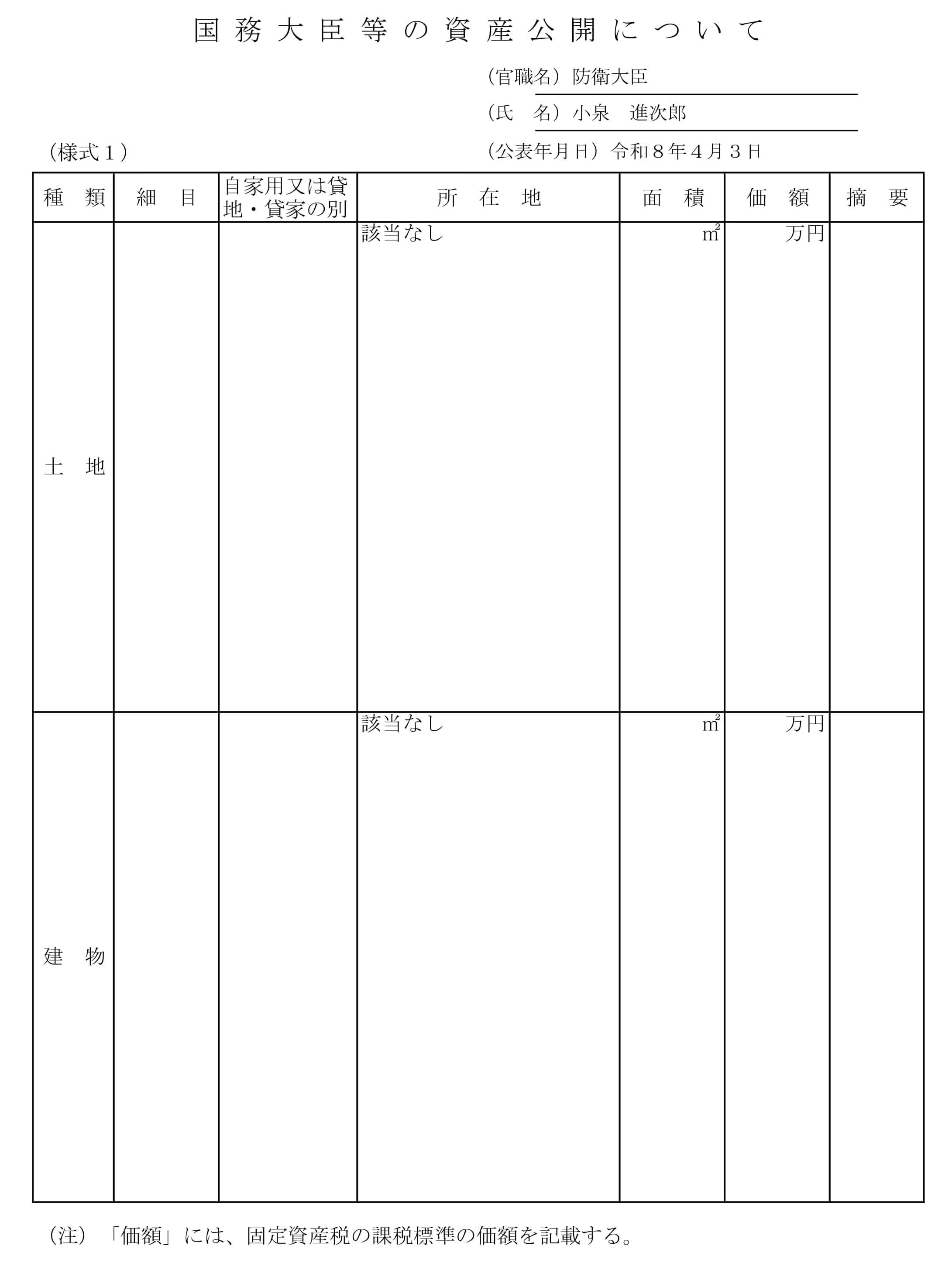 防衛省、小泉進次郎氏ら防衛省政務三役の資産資料を公開(2026年4月3日)