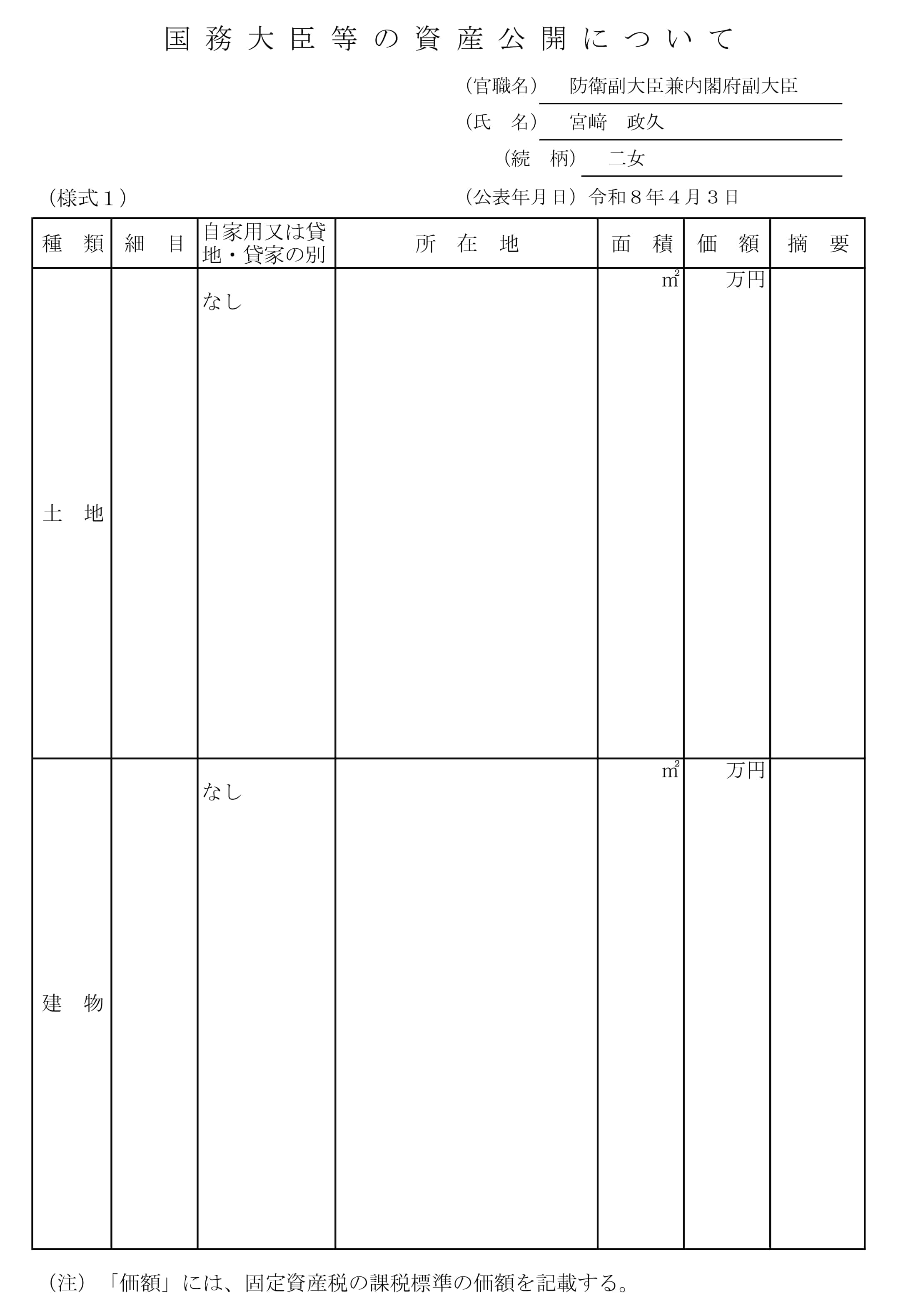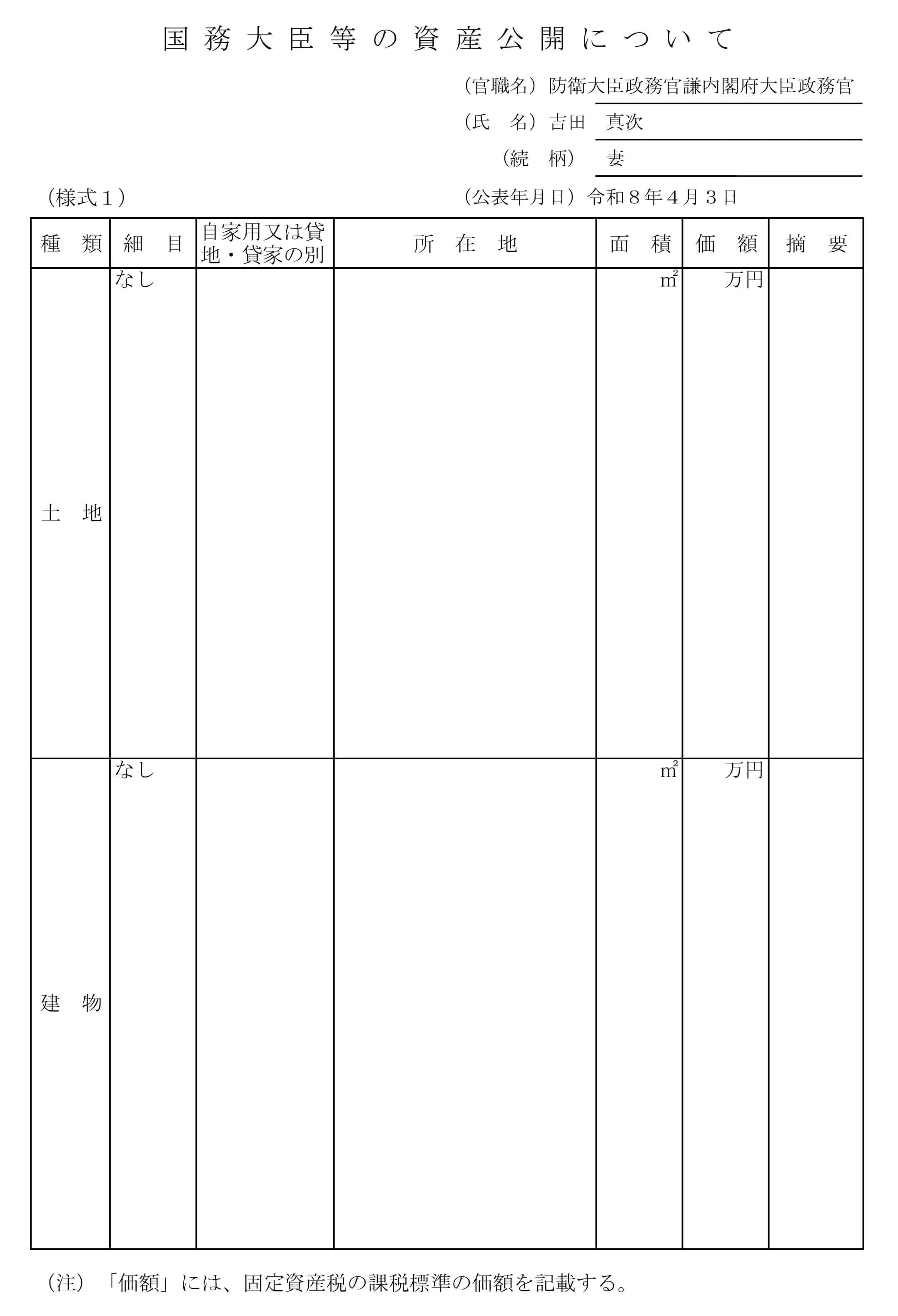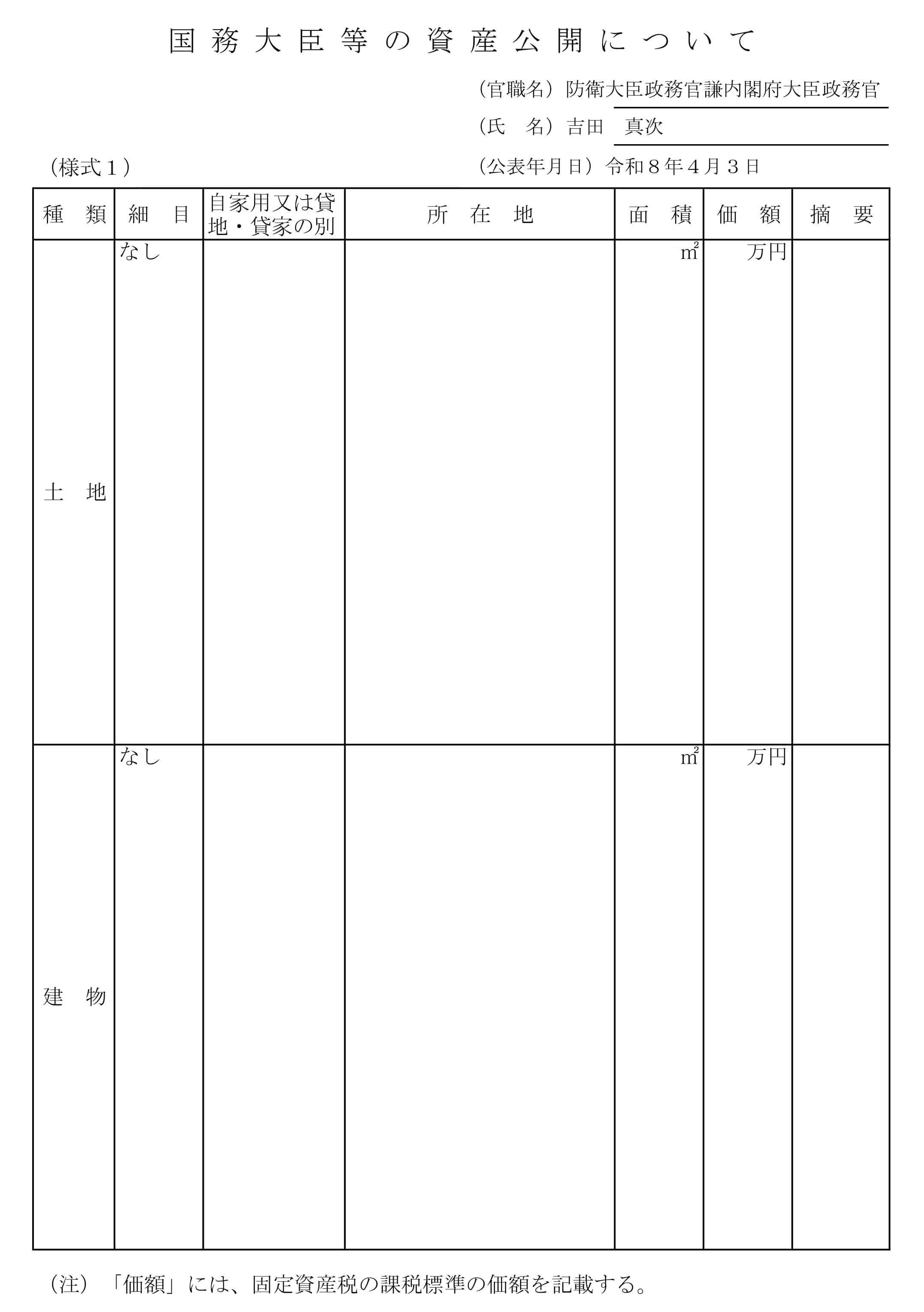防衛省は4月3日(金)17時00分、第2次高市内閣で就任時の防衛大臣、防衛副大臣、防衛大臣政務官2名と家族の資産資料を公開した。