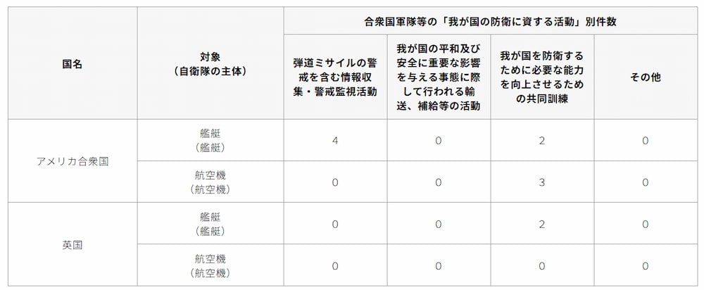 防衛省、令和7年の合衆国軍等警護実績を報告(4月3日)