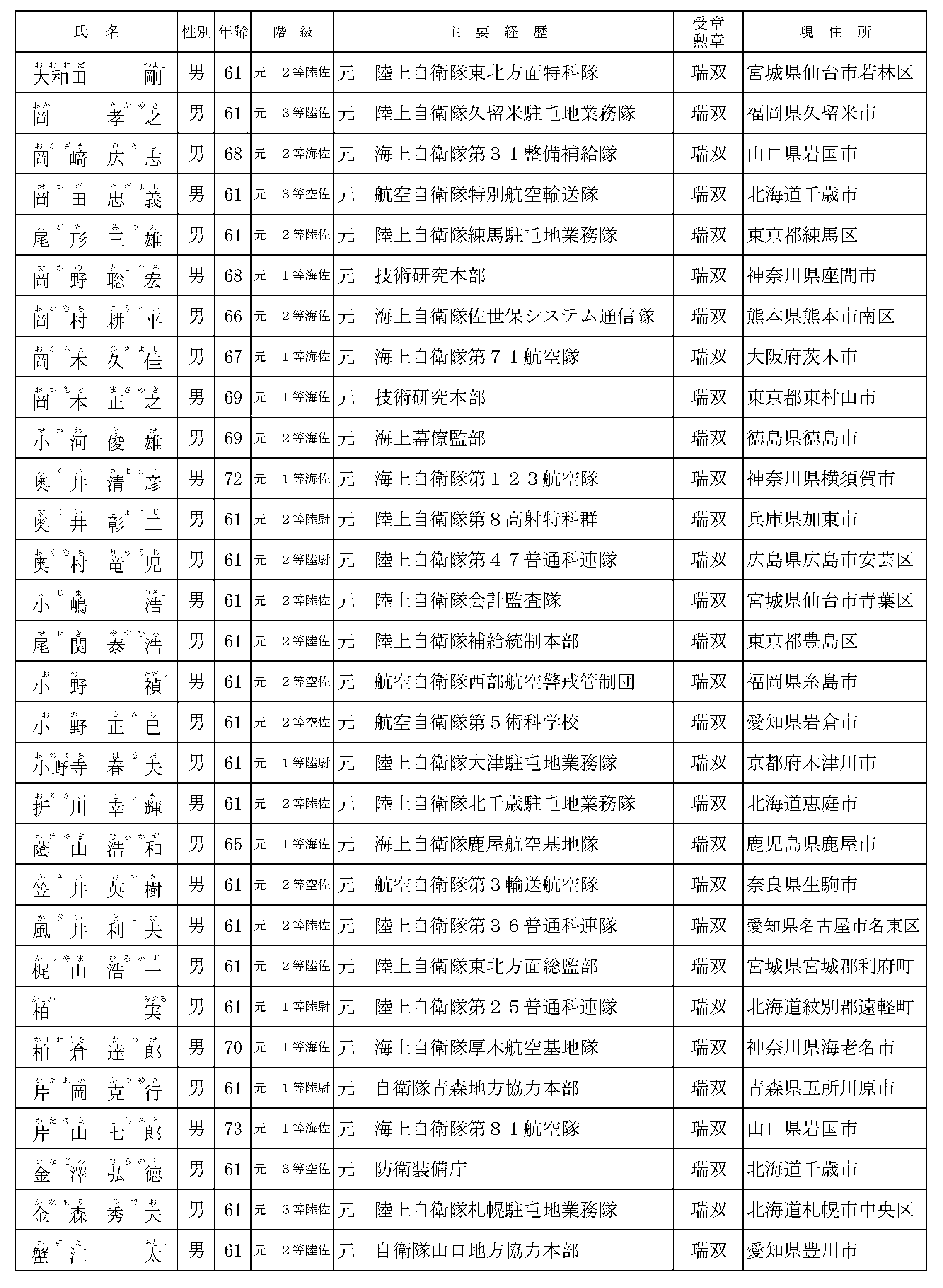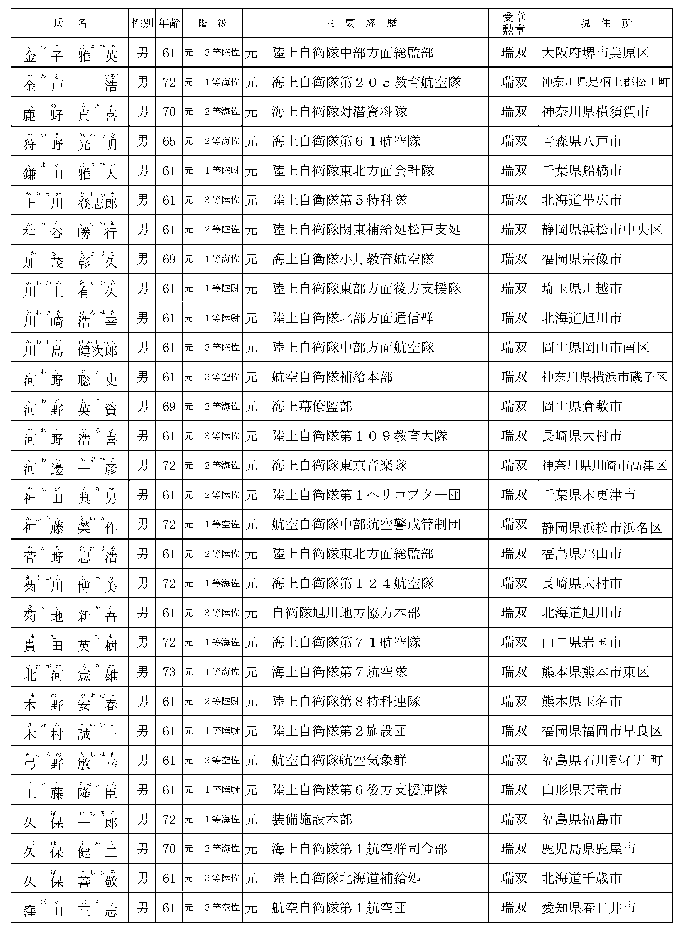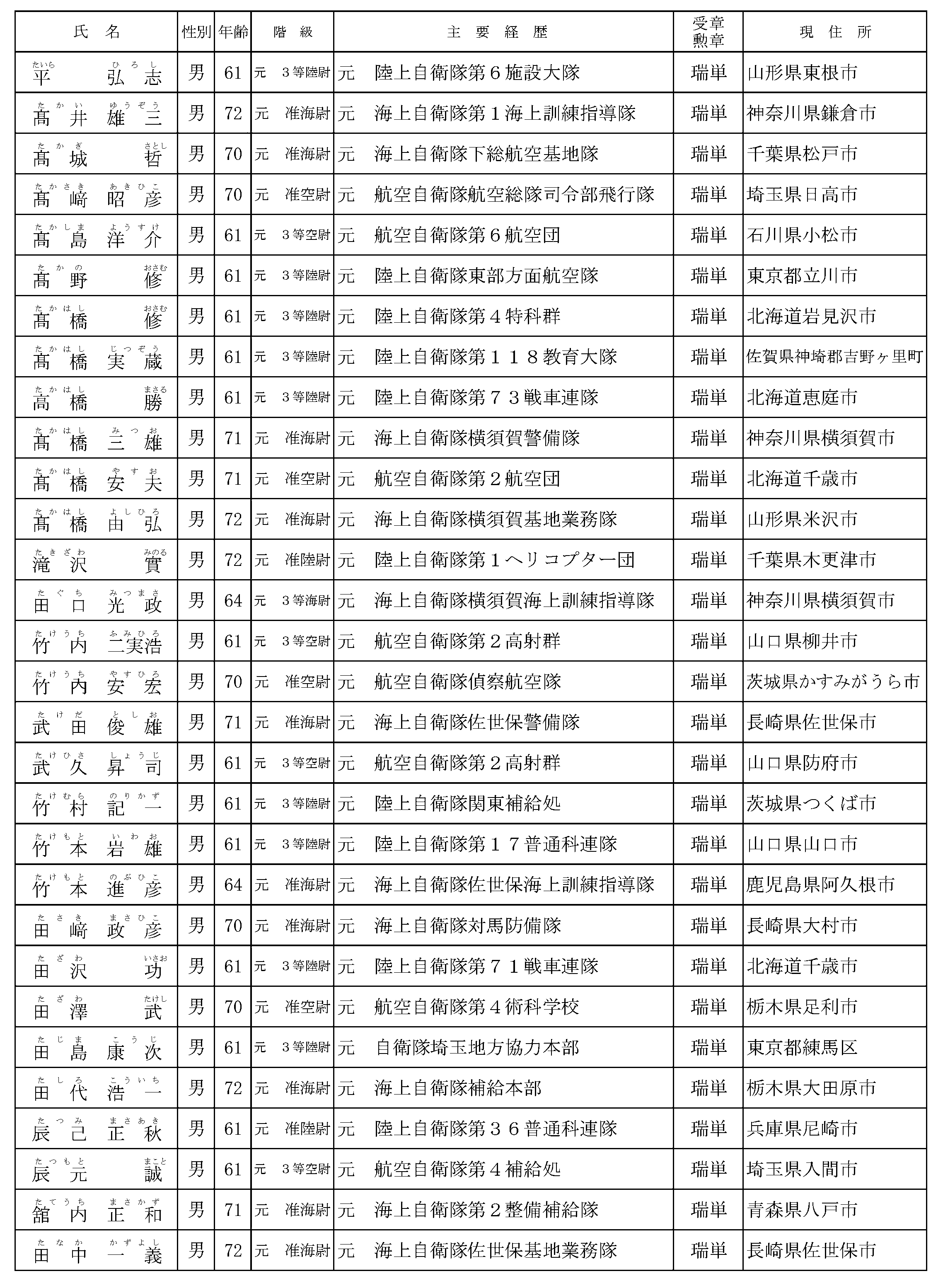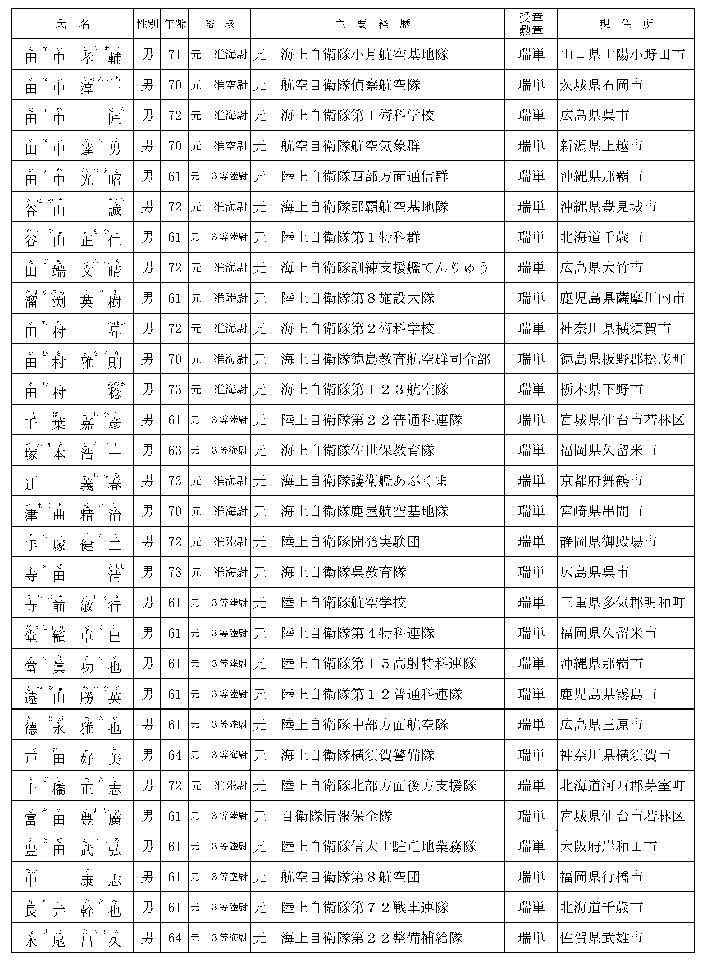 → 防衛省 第46回危険業務従事者叙勲受章者名簿(PDF)