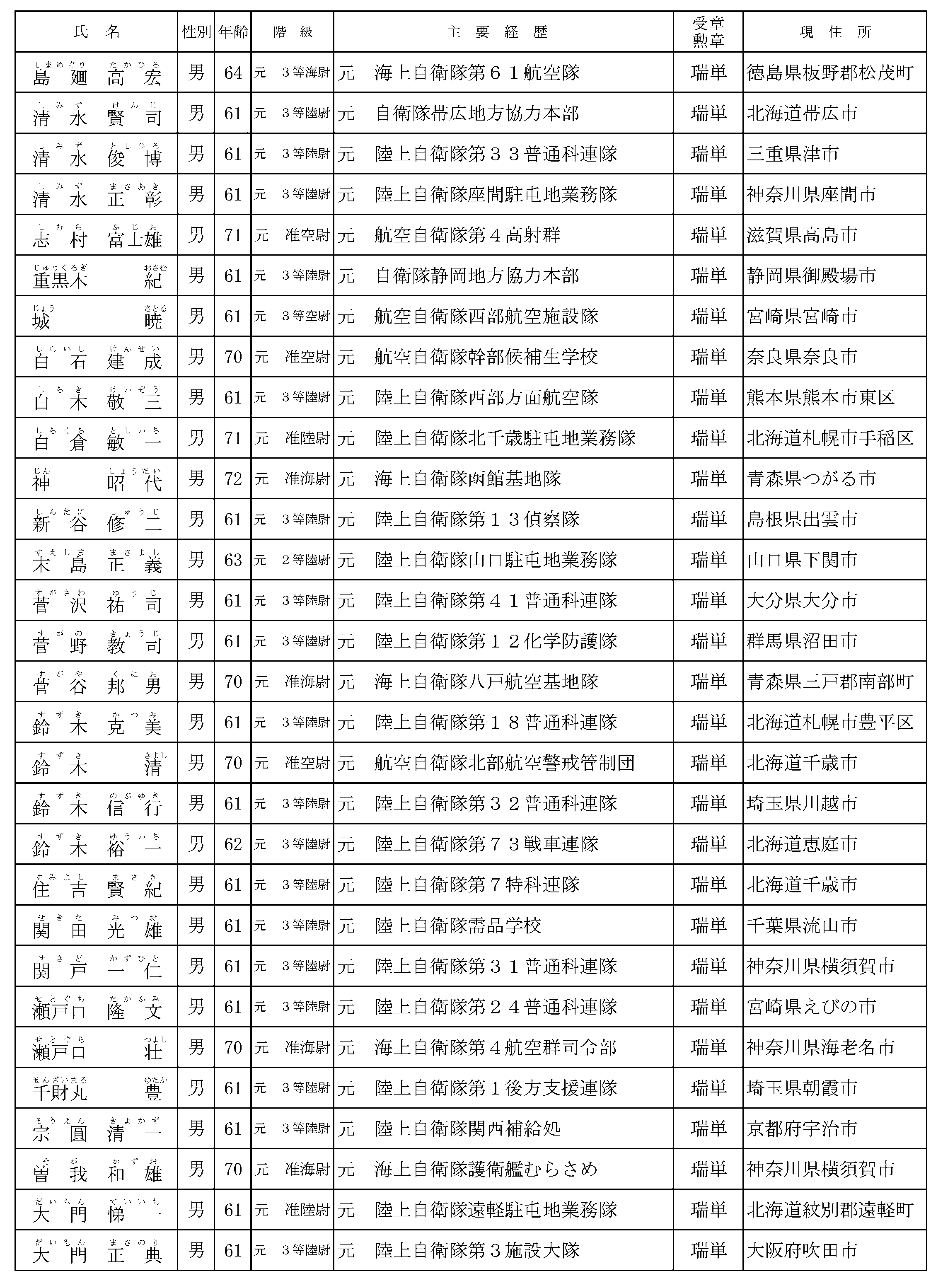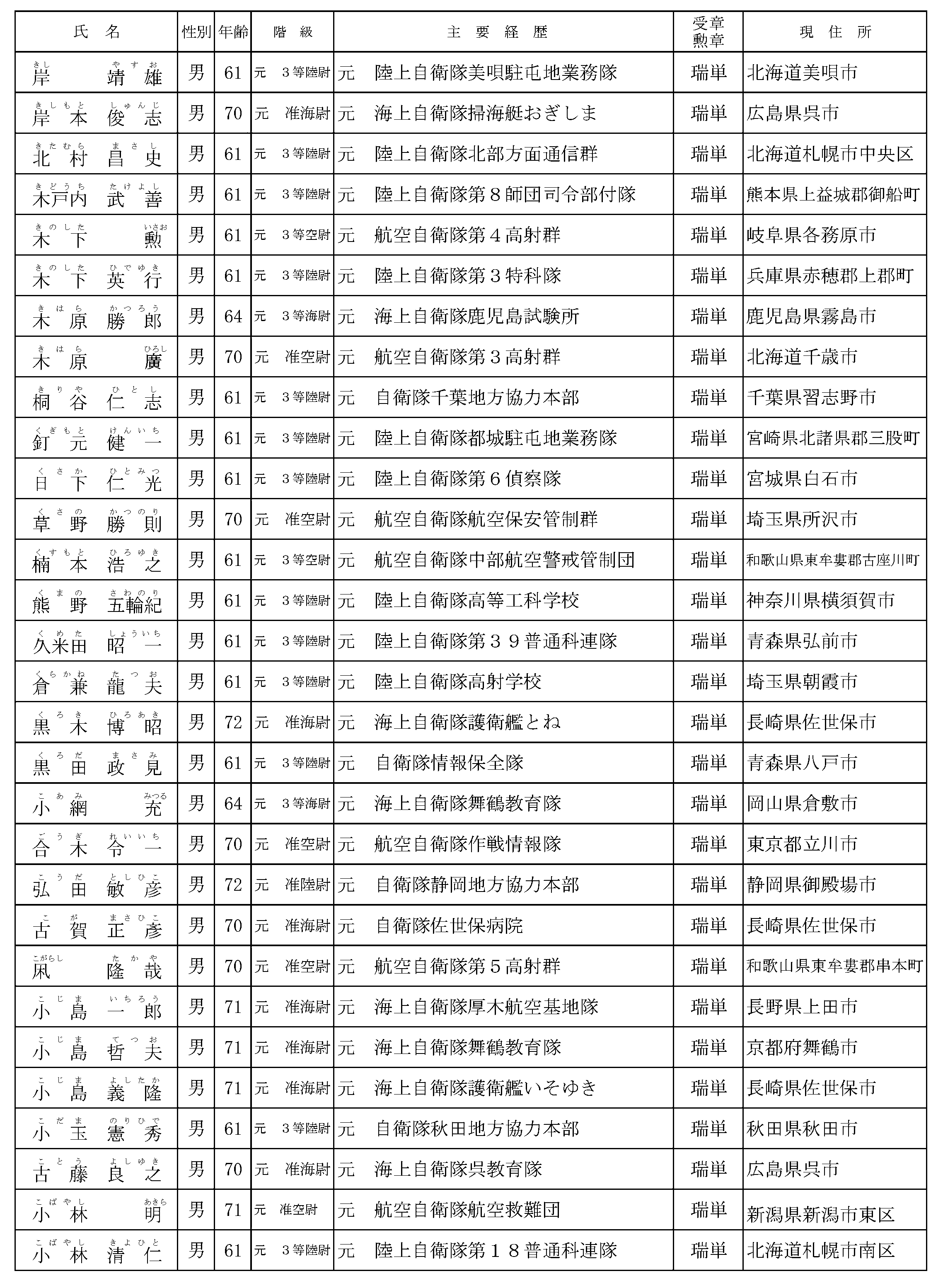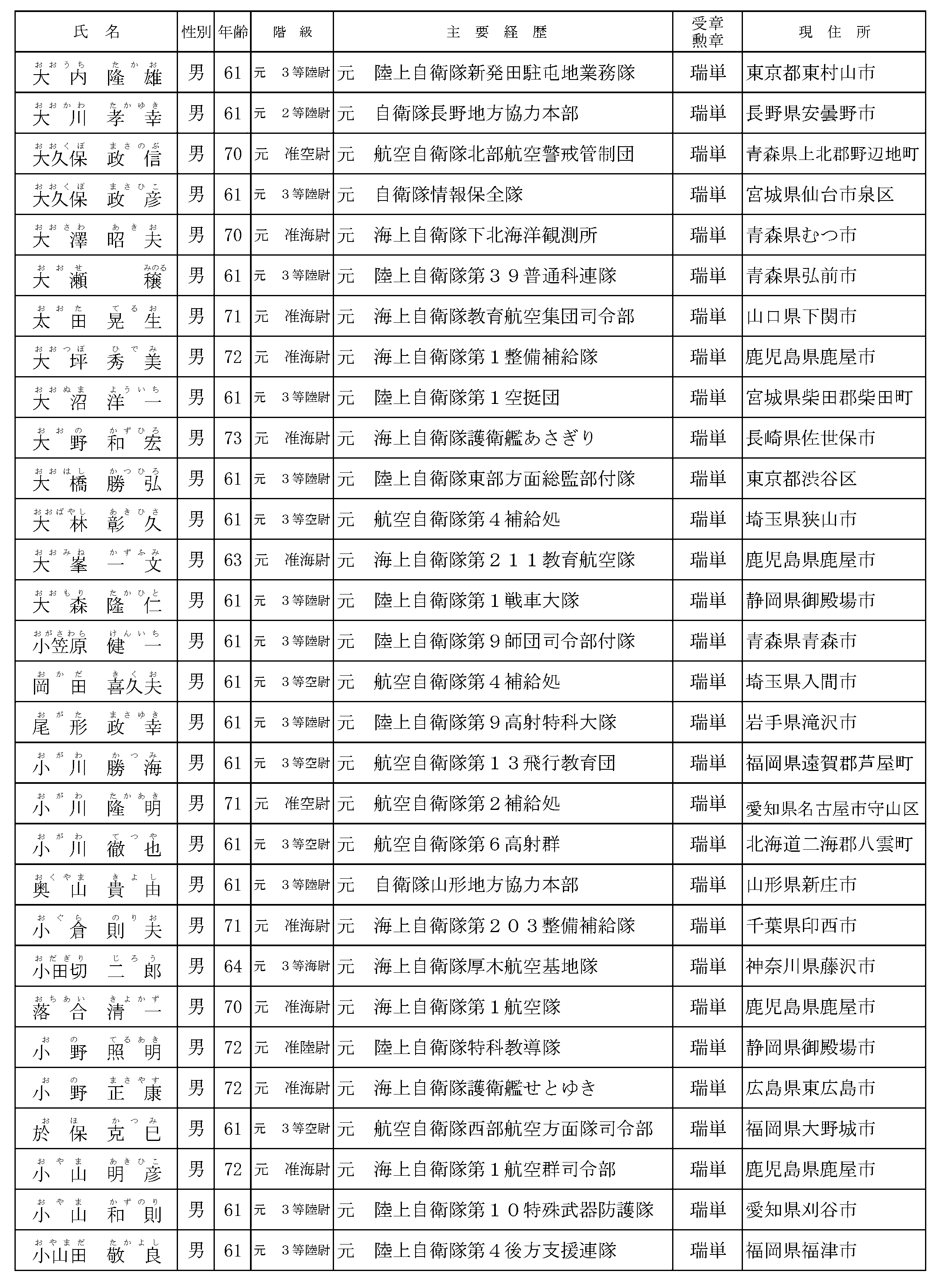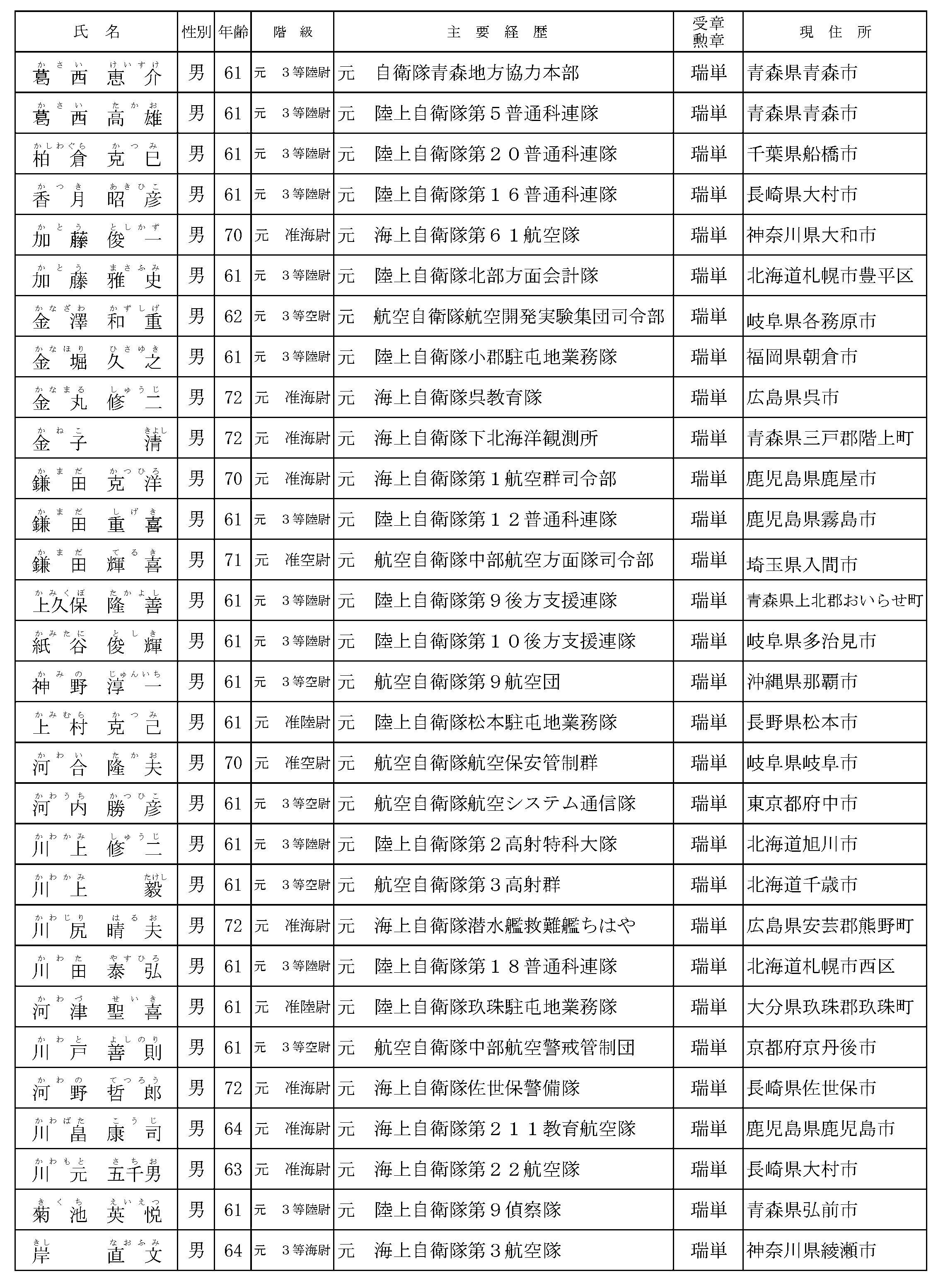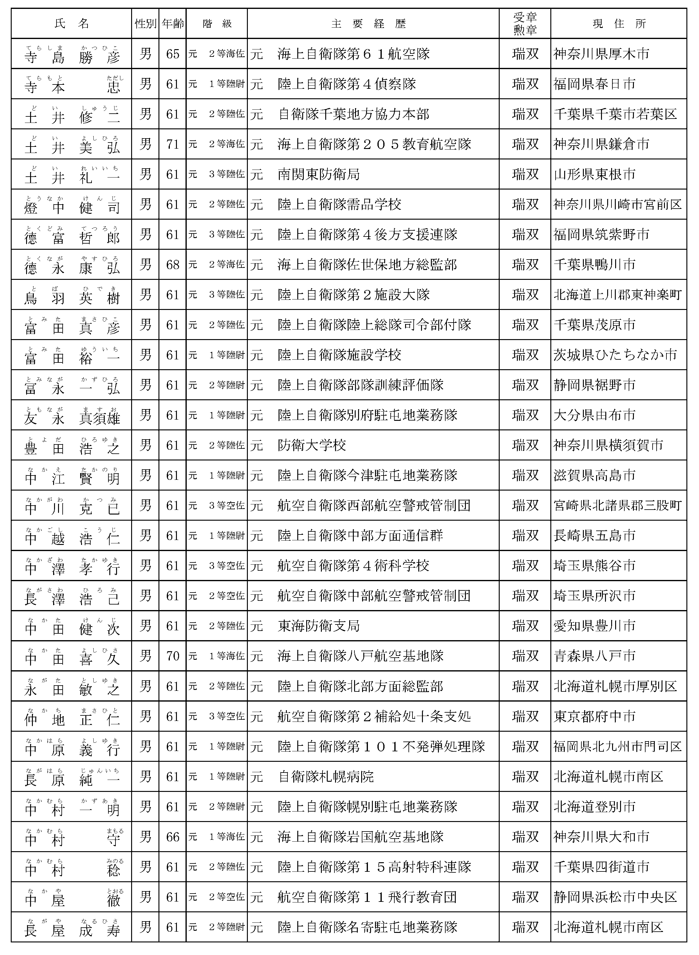 → 防衛省 第46回危険業務従事者叙勲受章者名簿(PDF)