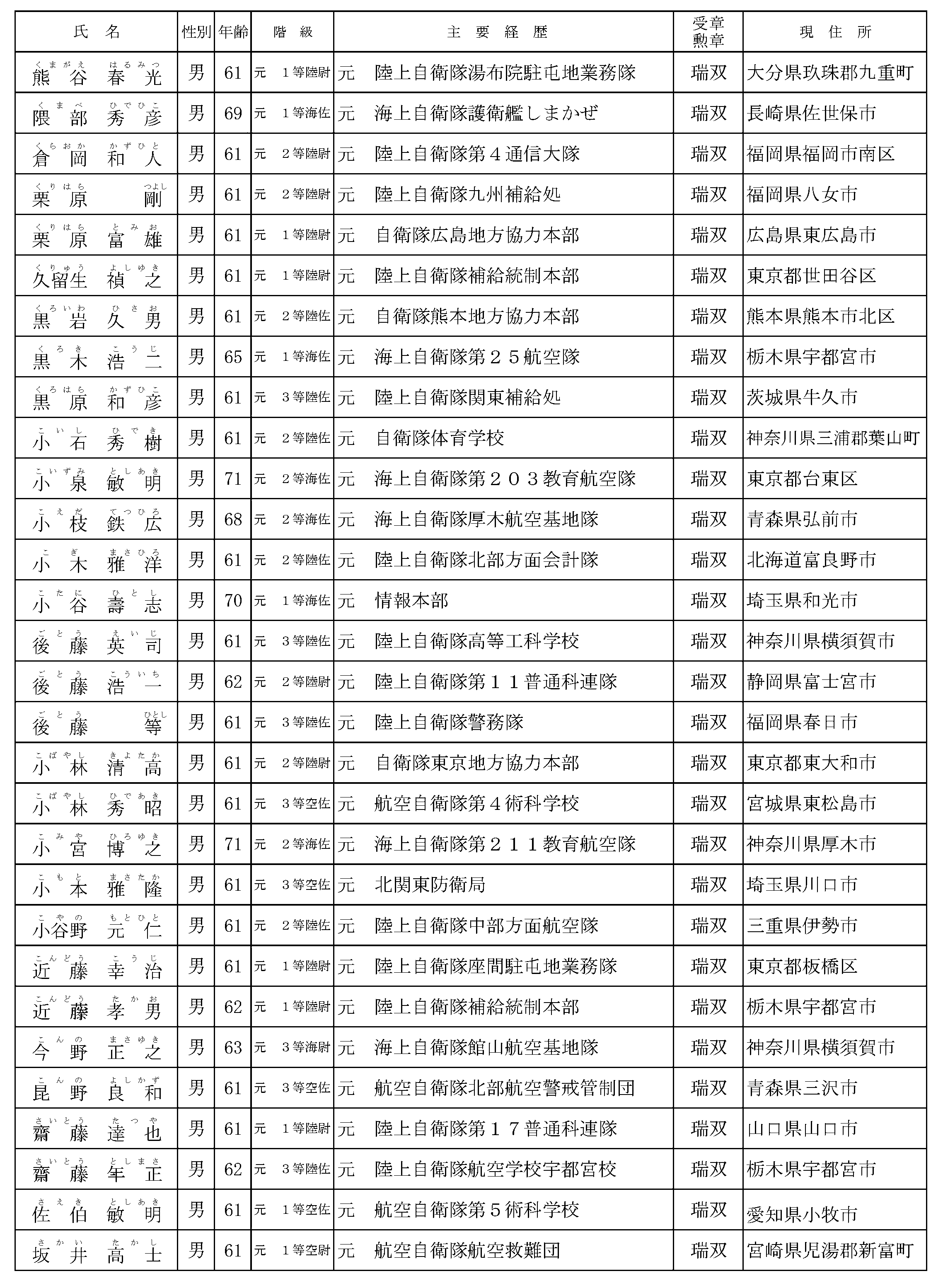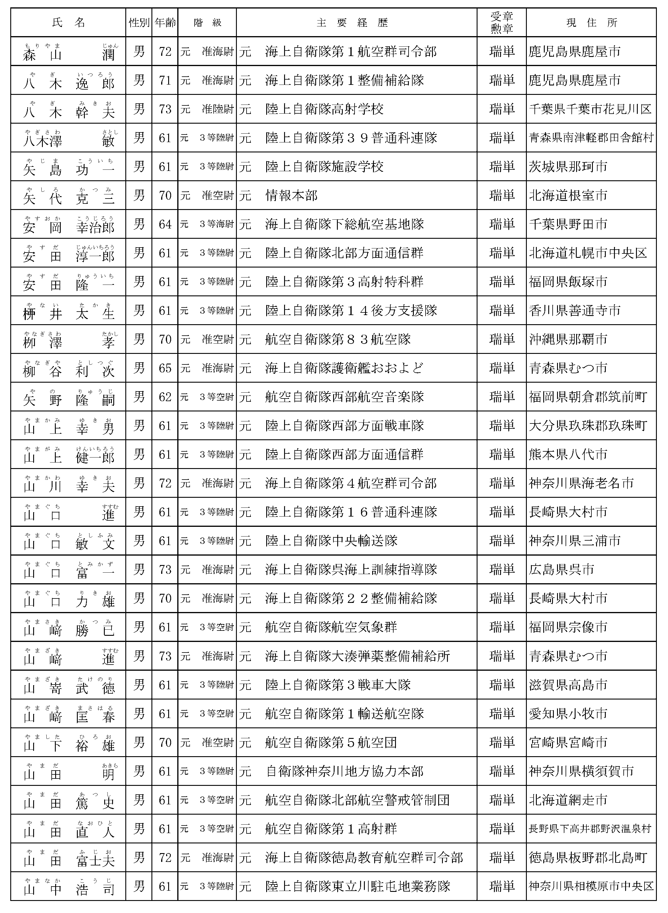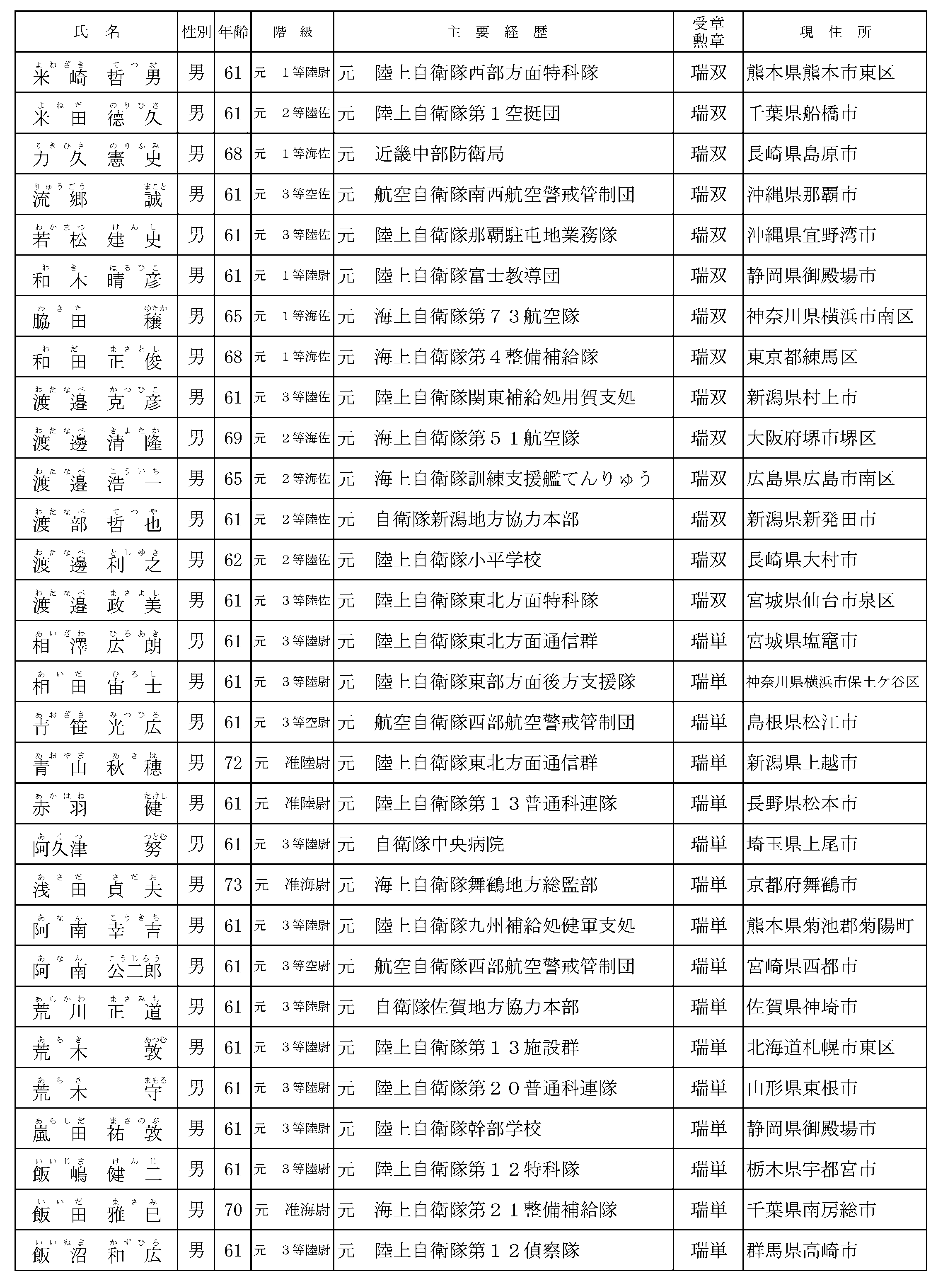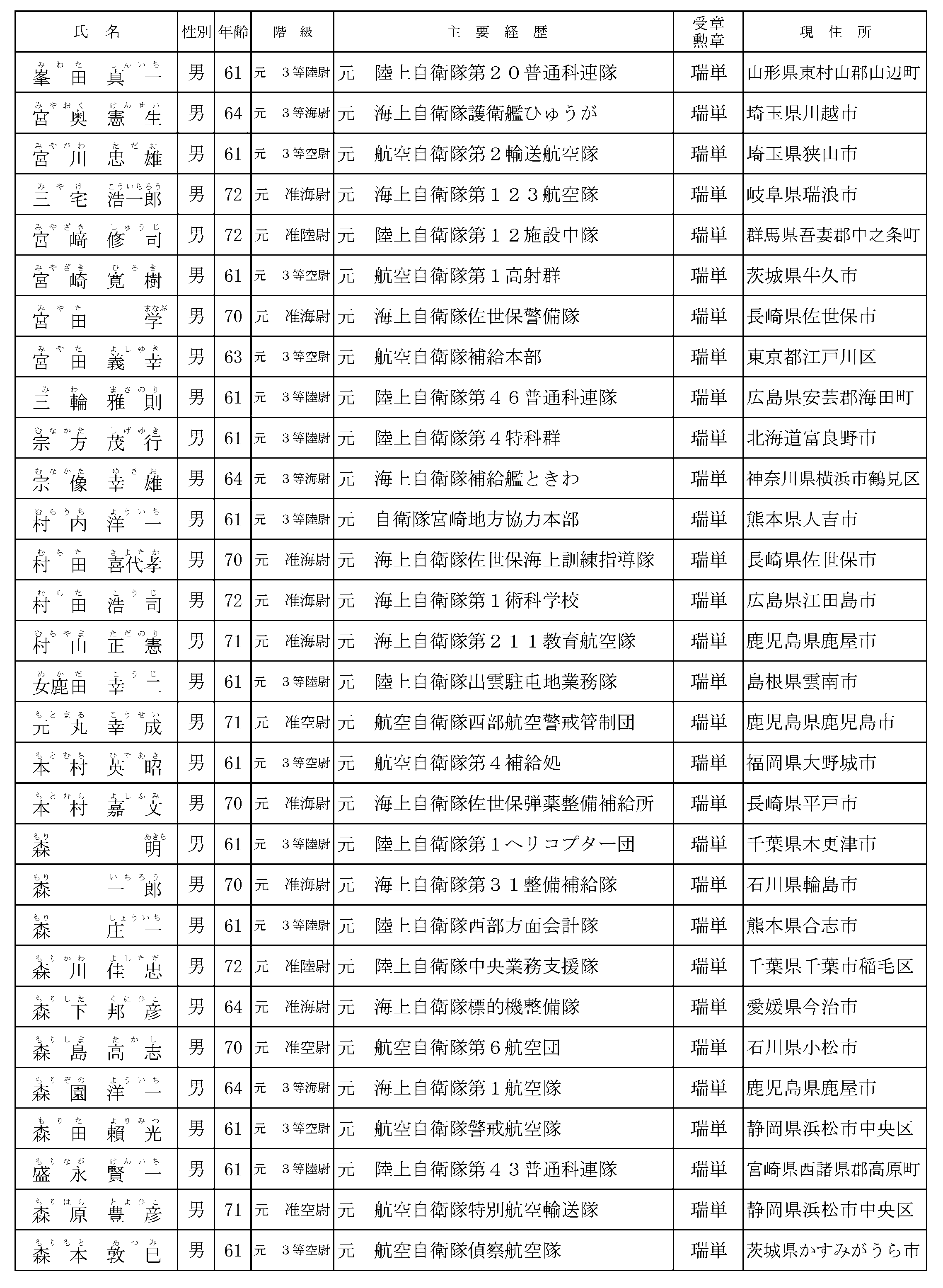 → 防衛省 第46回危険業務従事者叙勲受章者名簿(PDF)