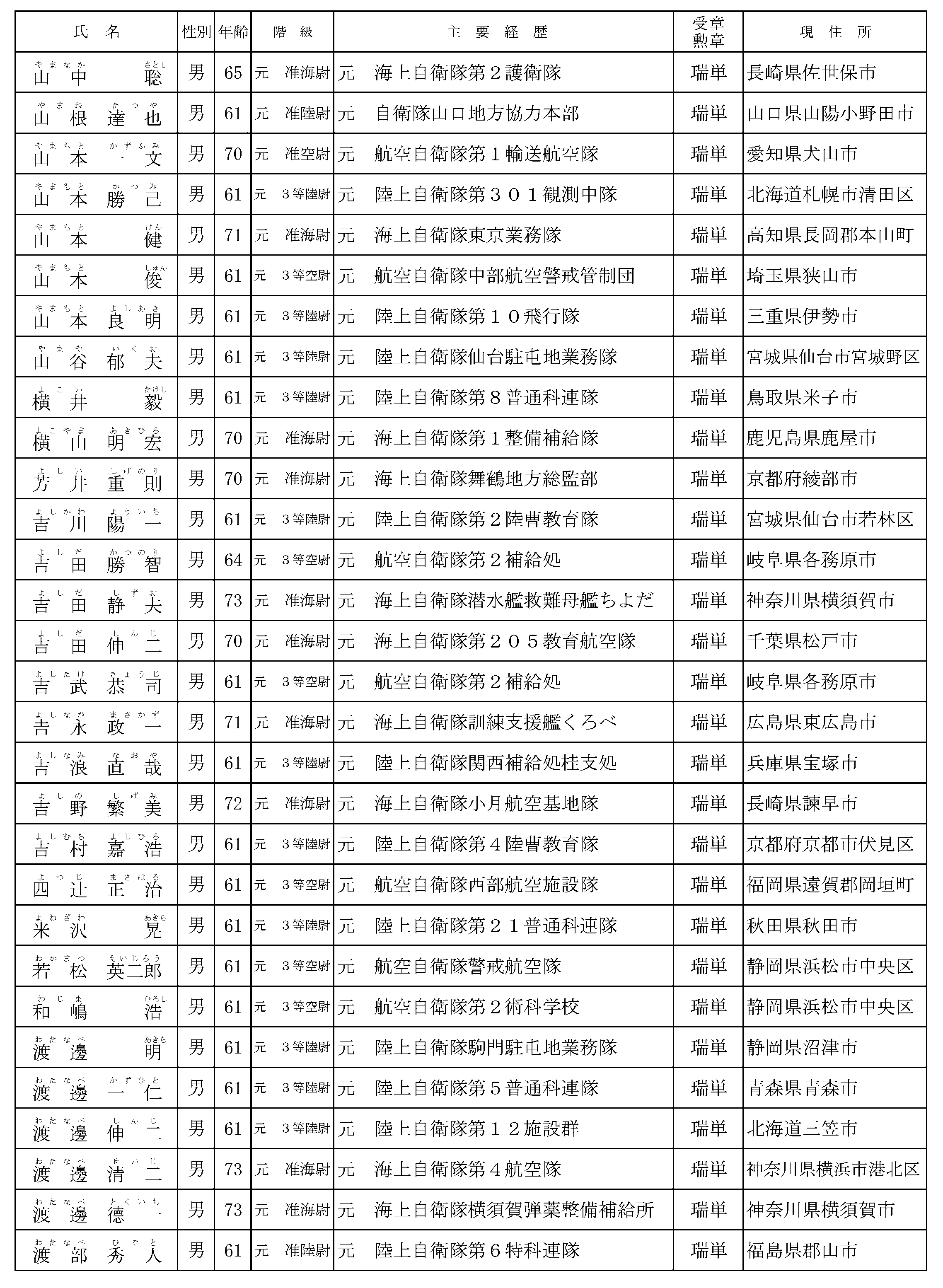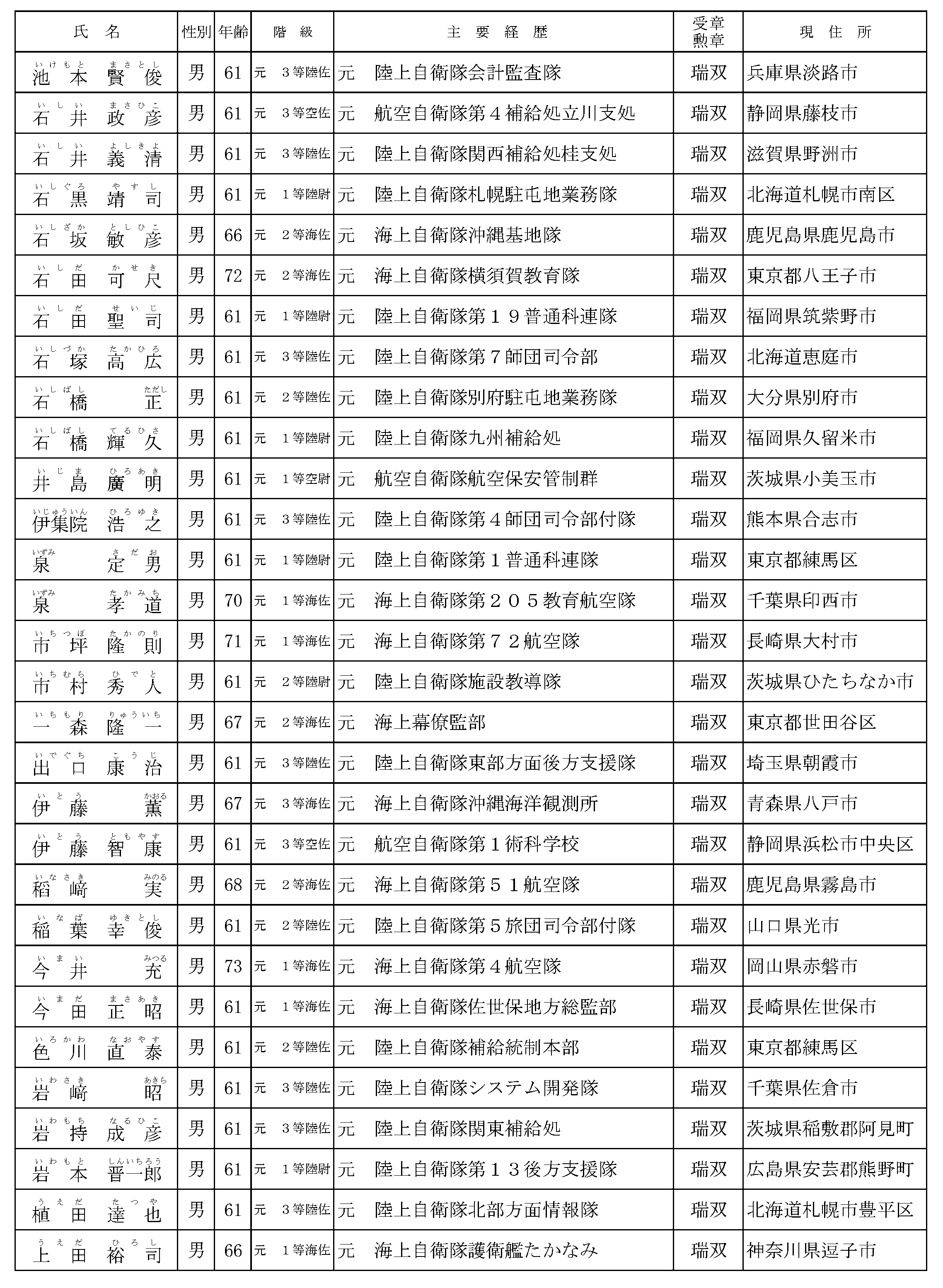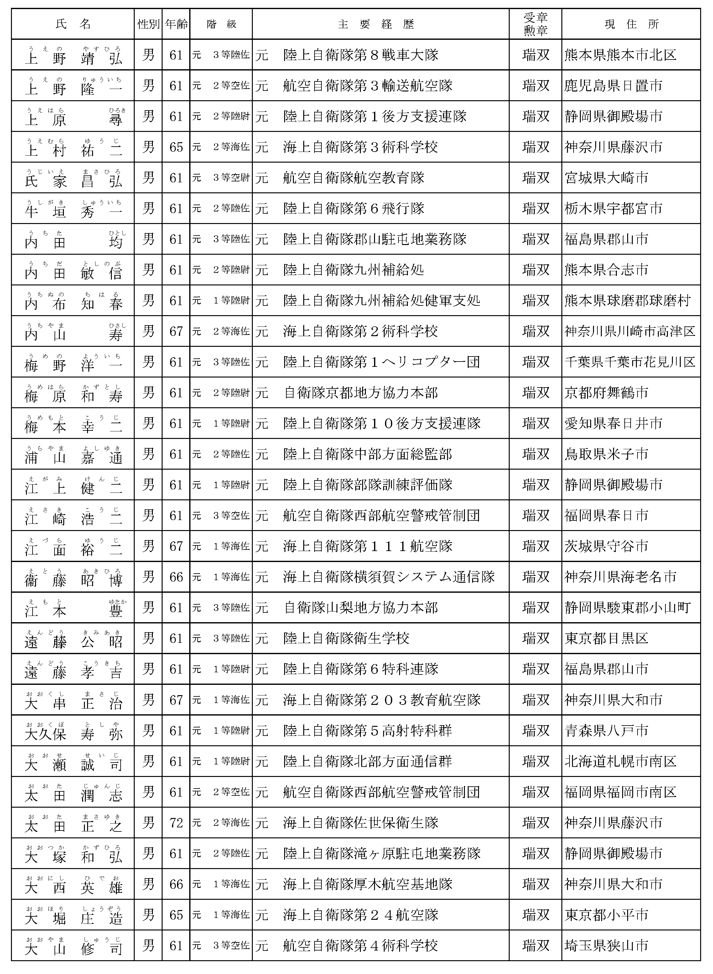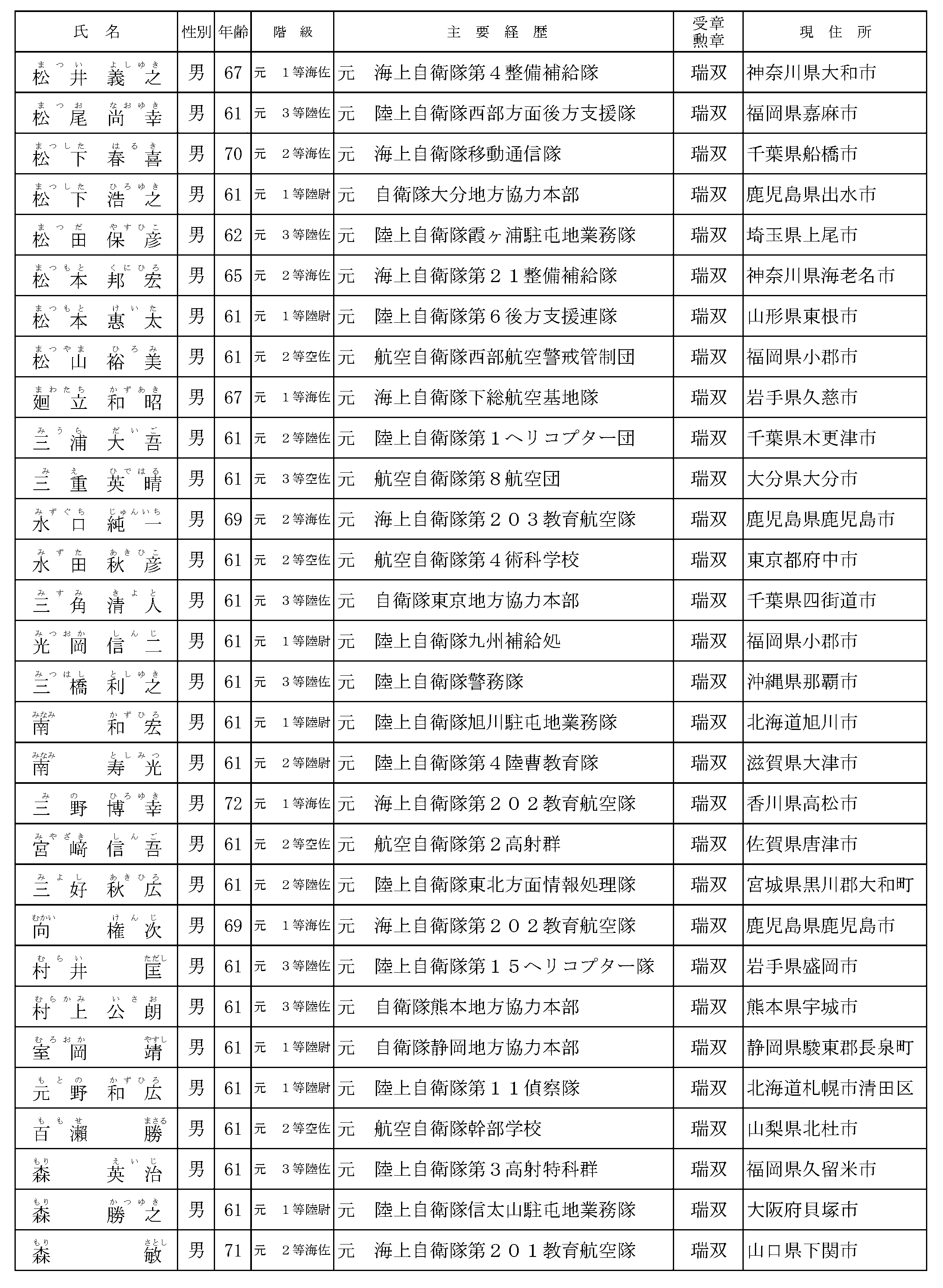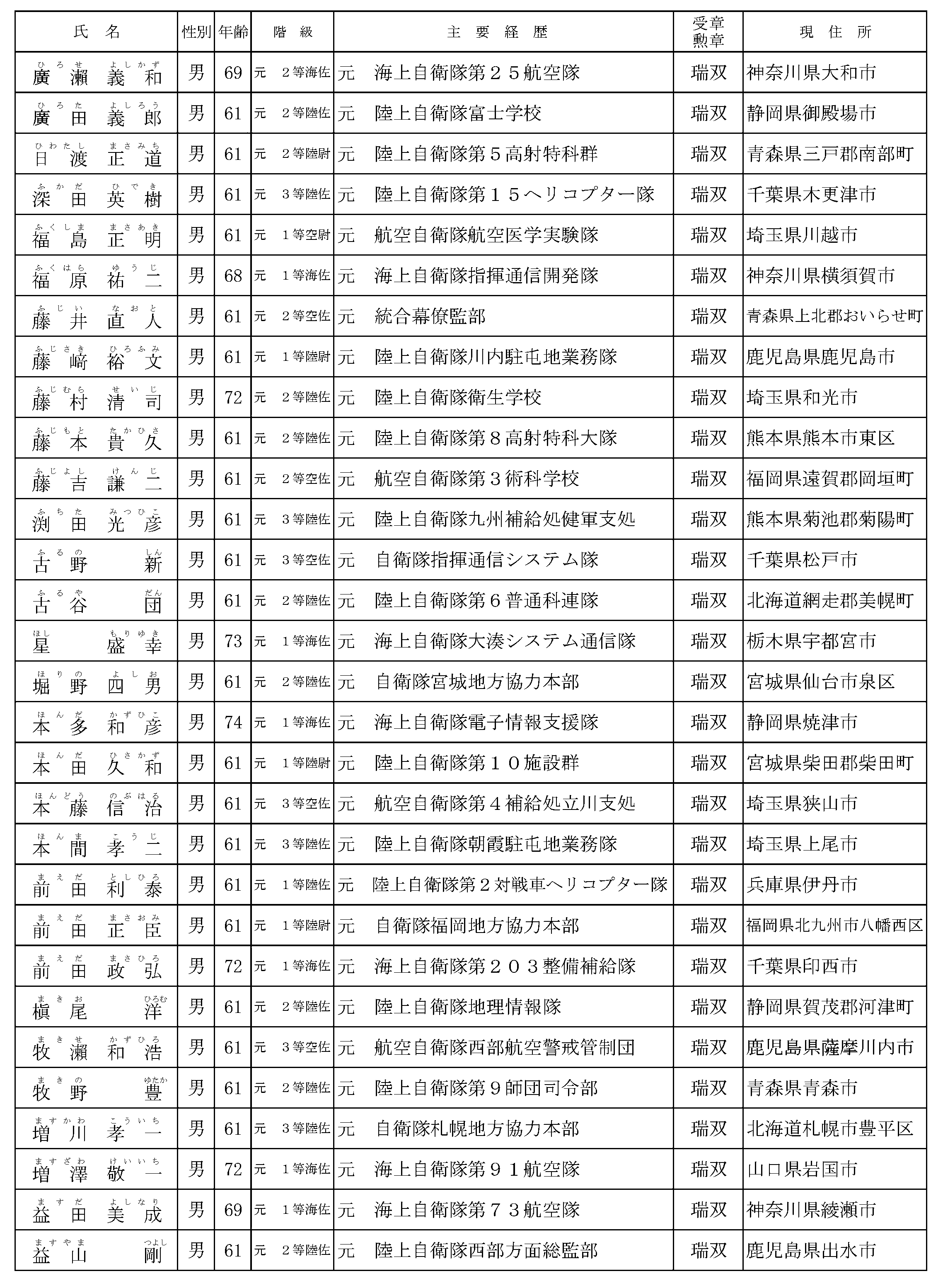 → 防衛省 第46回危険業務従事者叙勲受章者名簿(PDF)