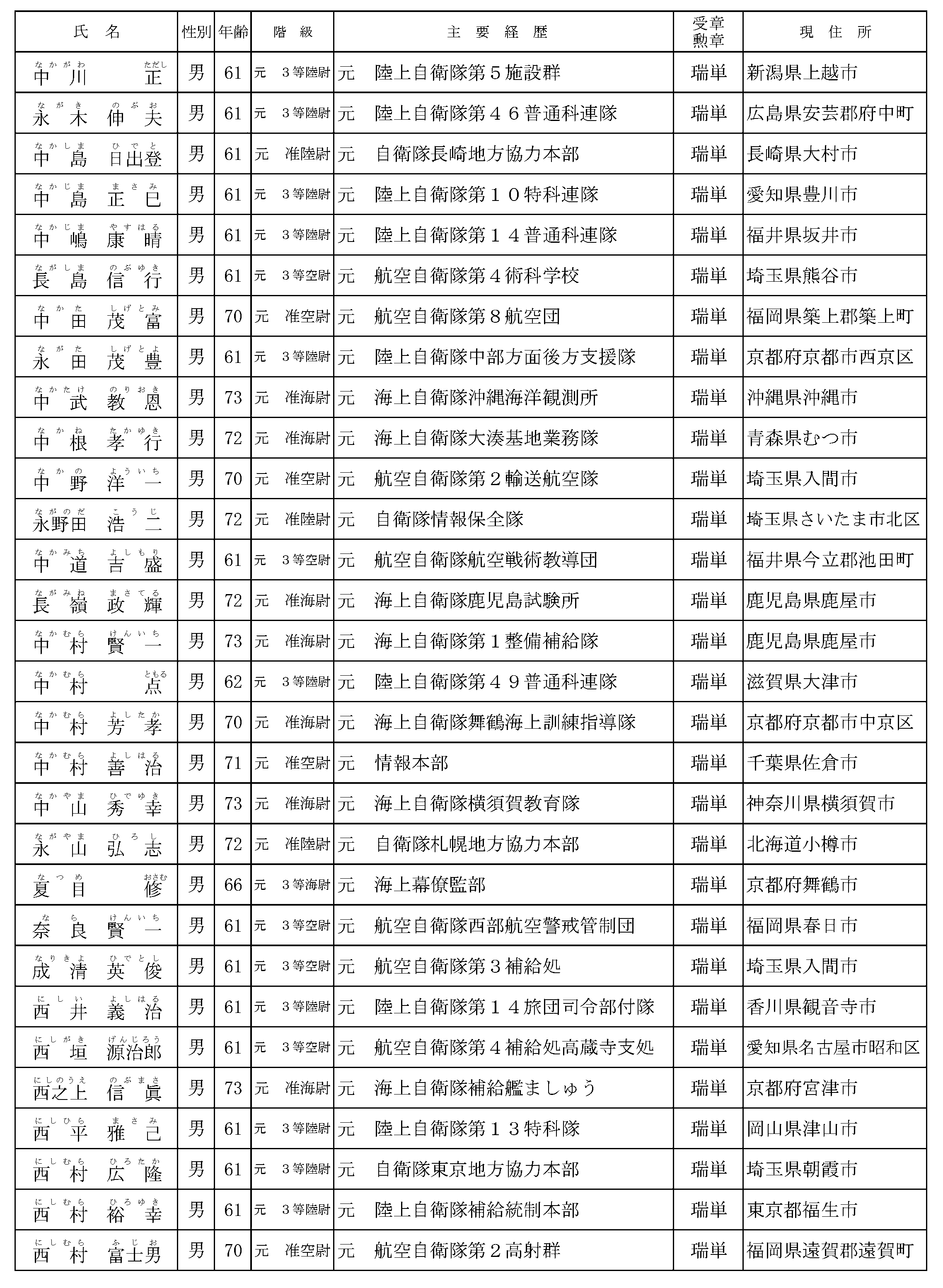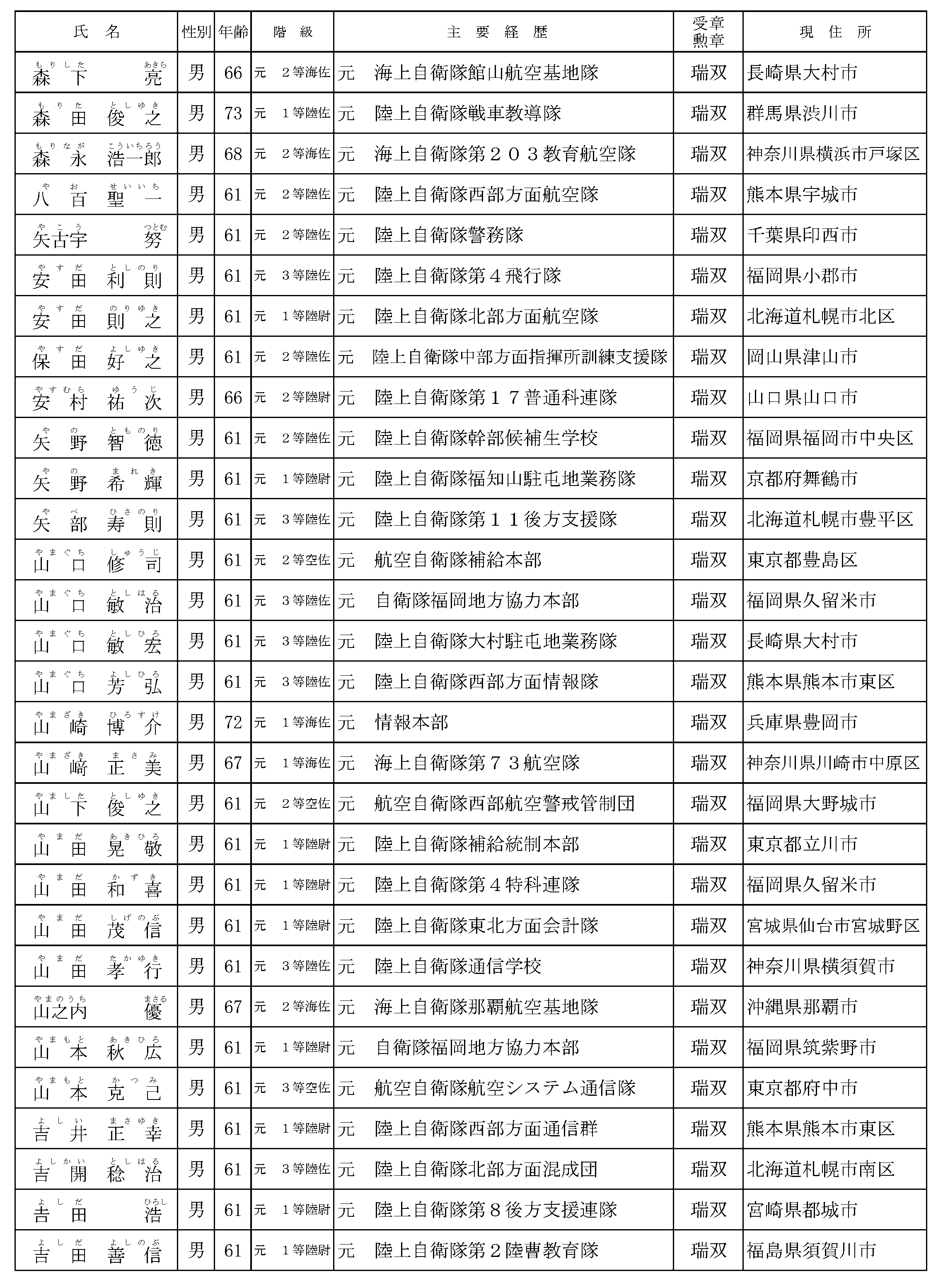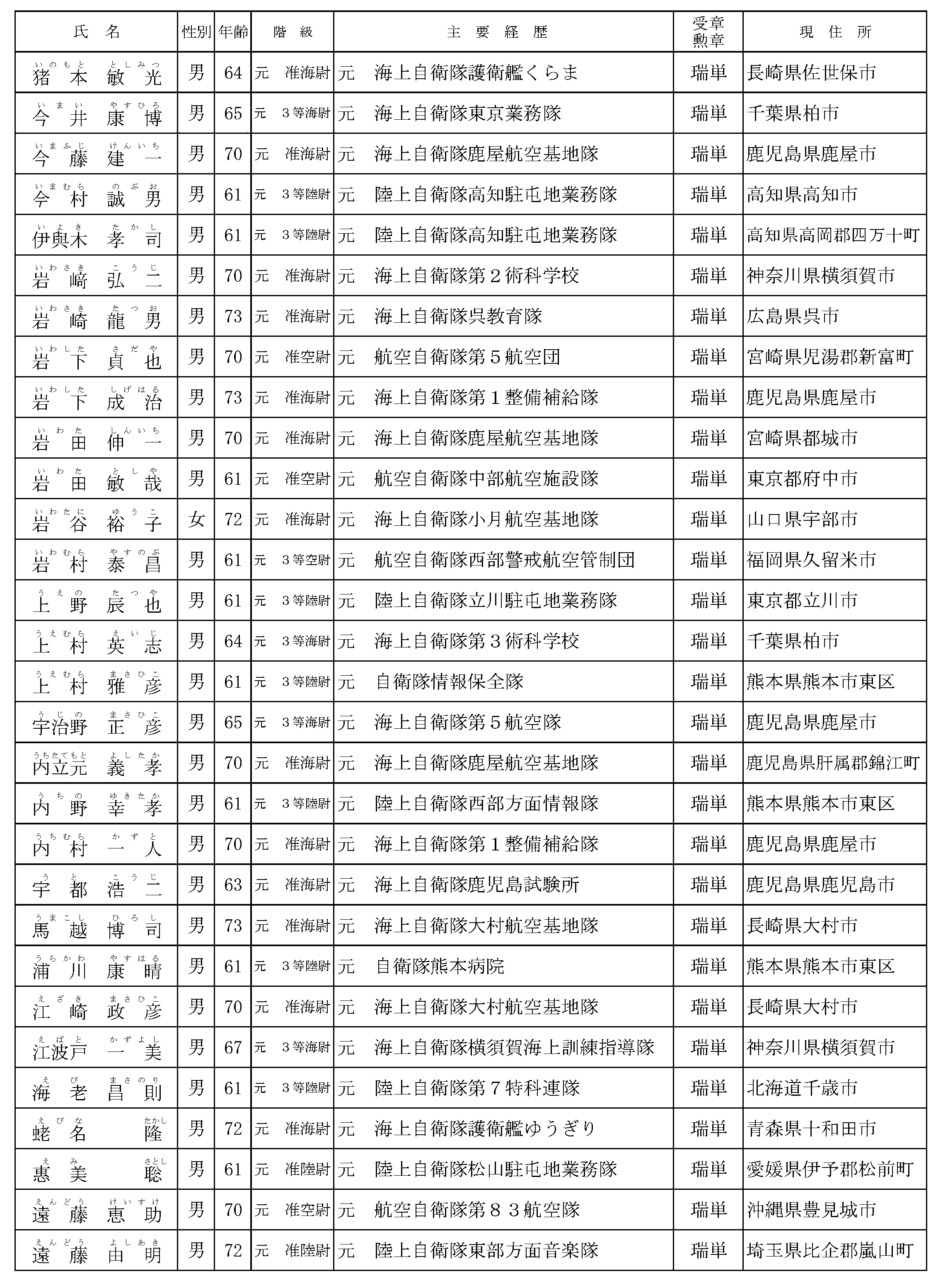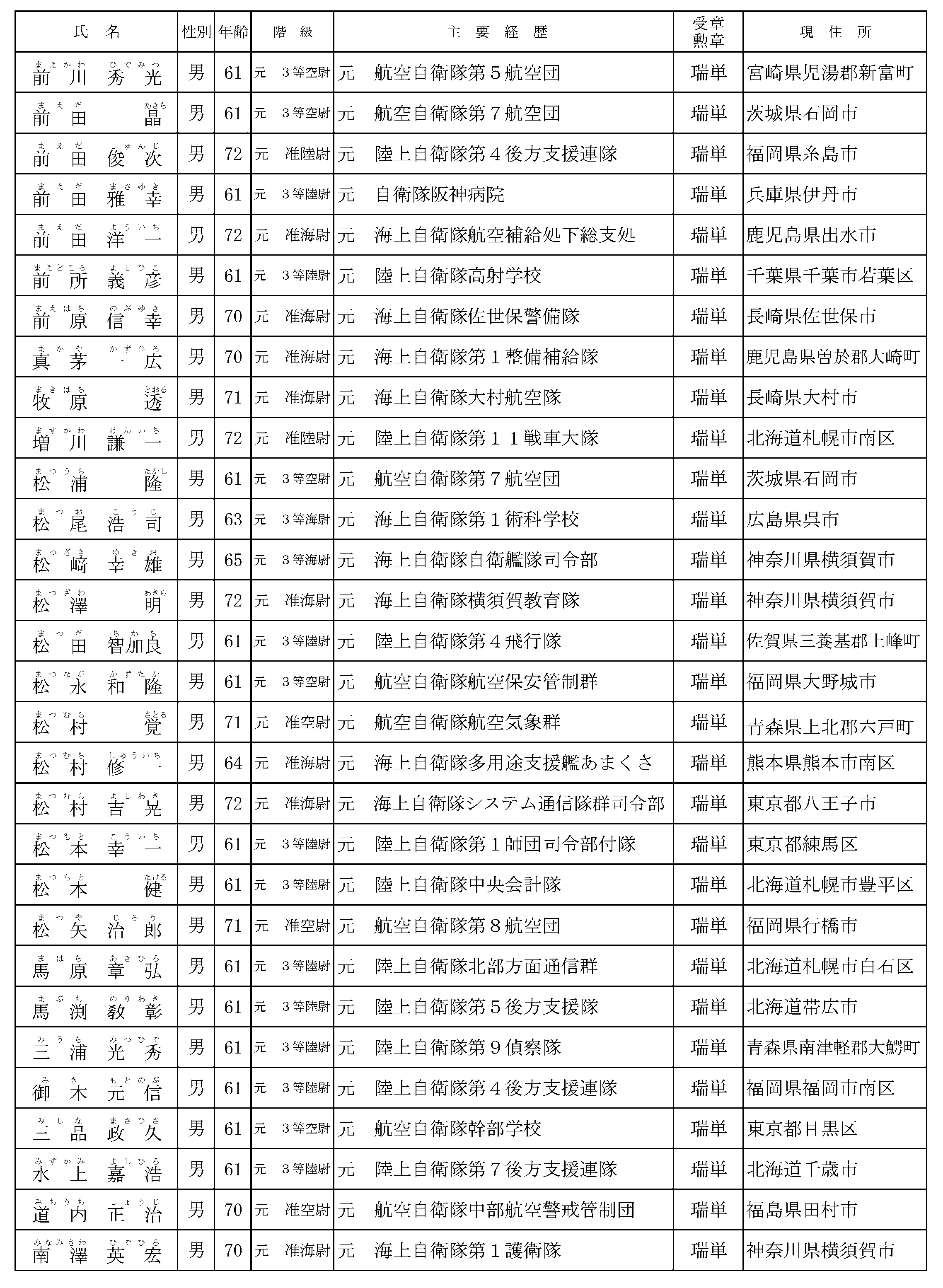 → 防衛省 第46回危険業務従事者叙勲受章者名簿(PDF)