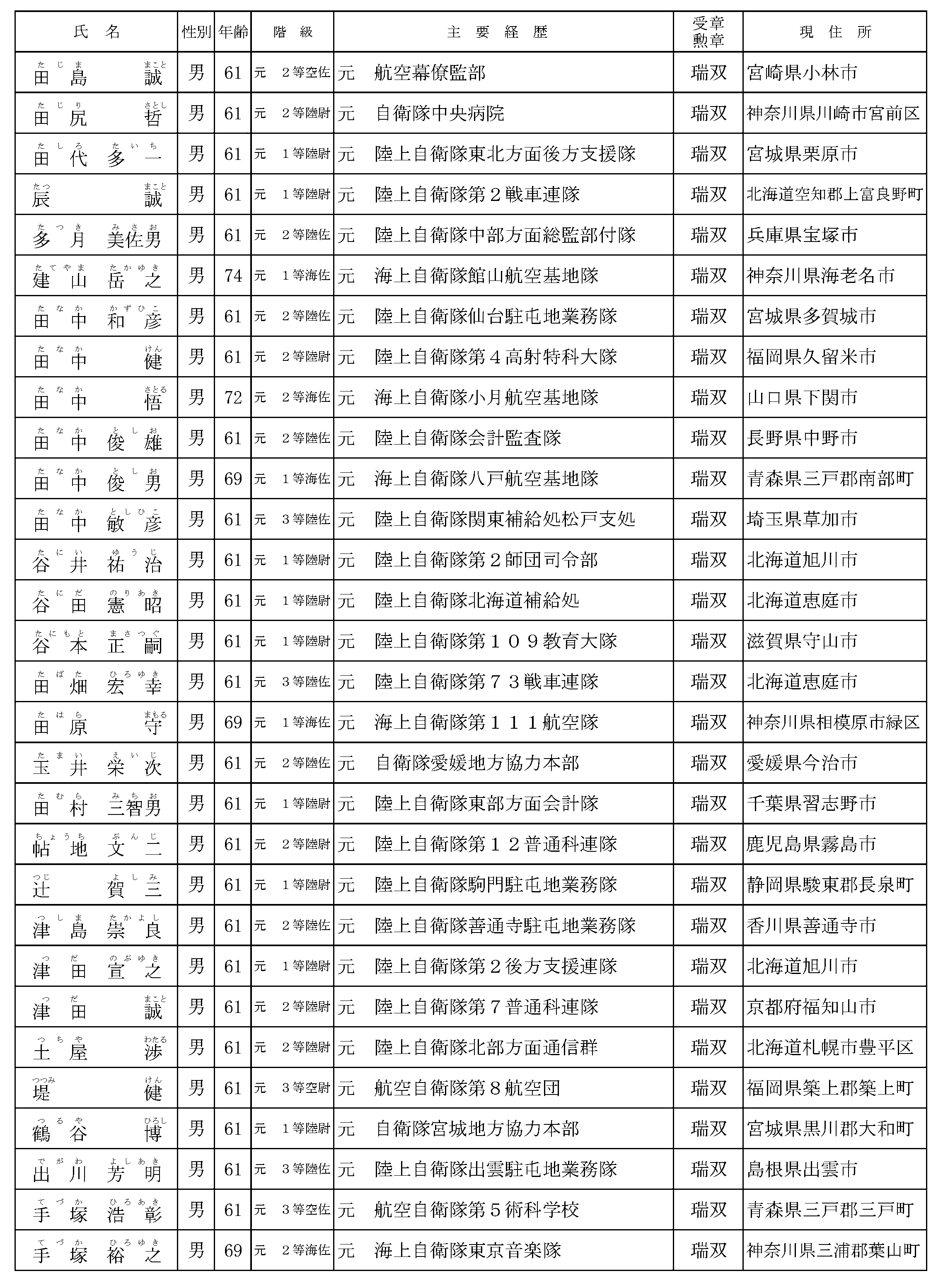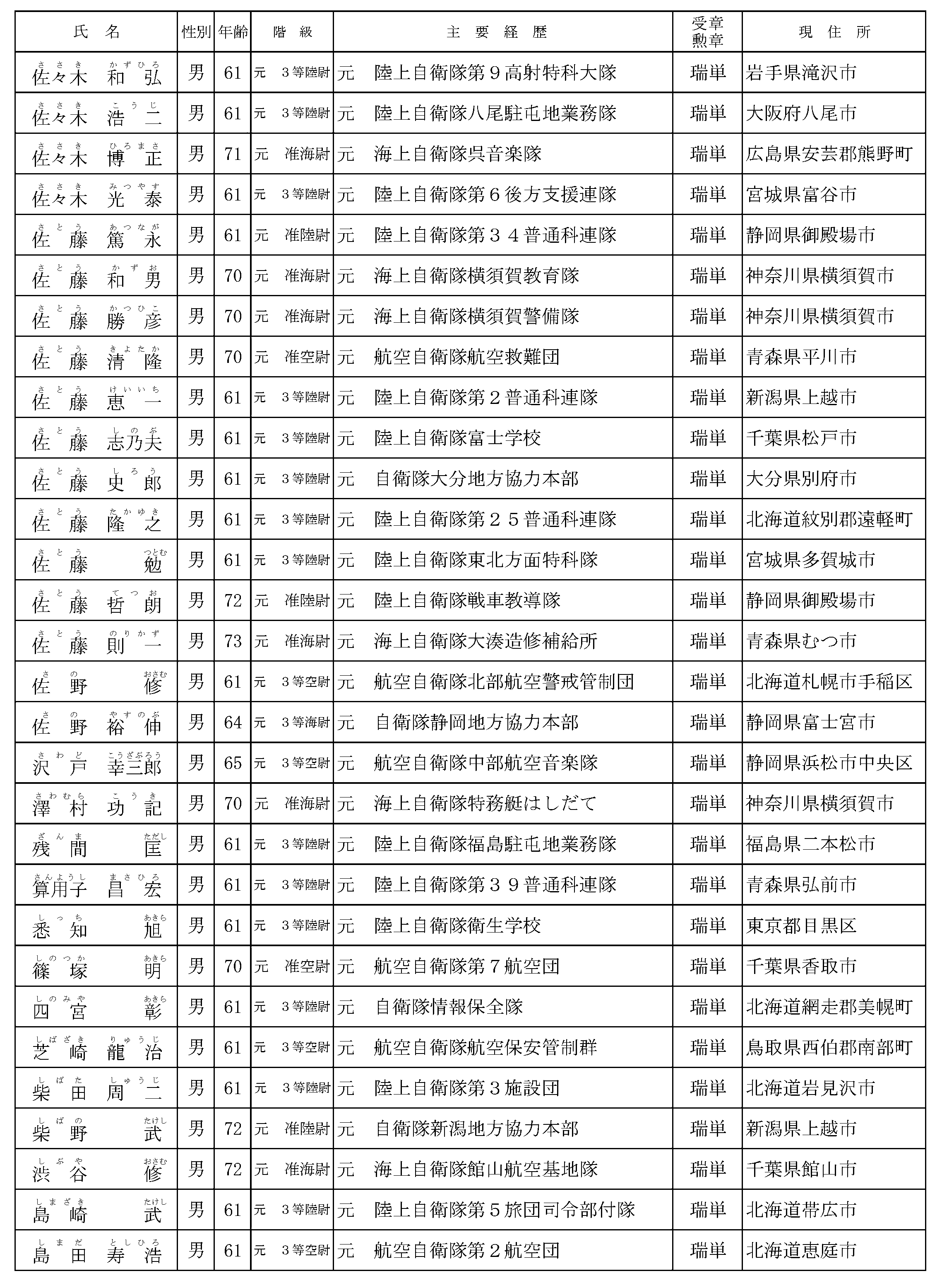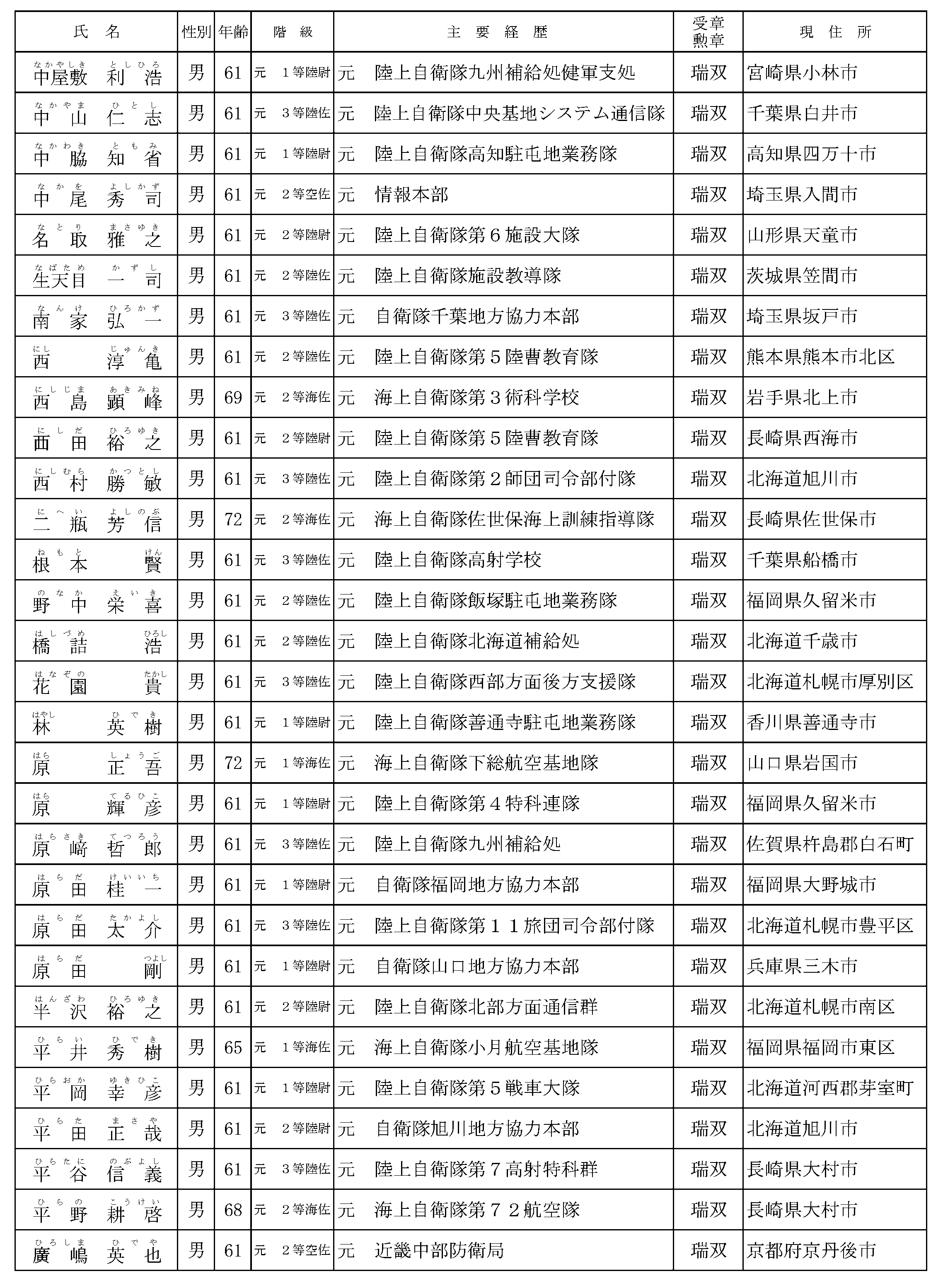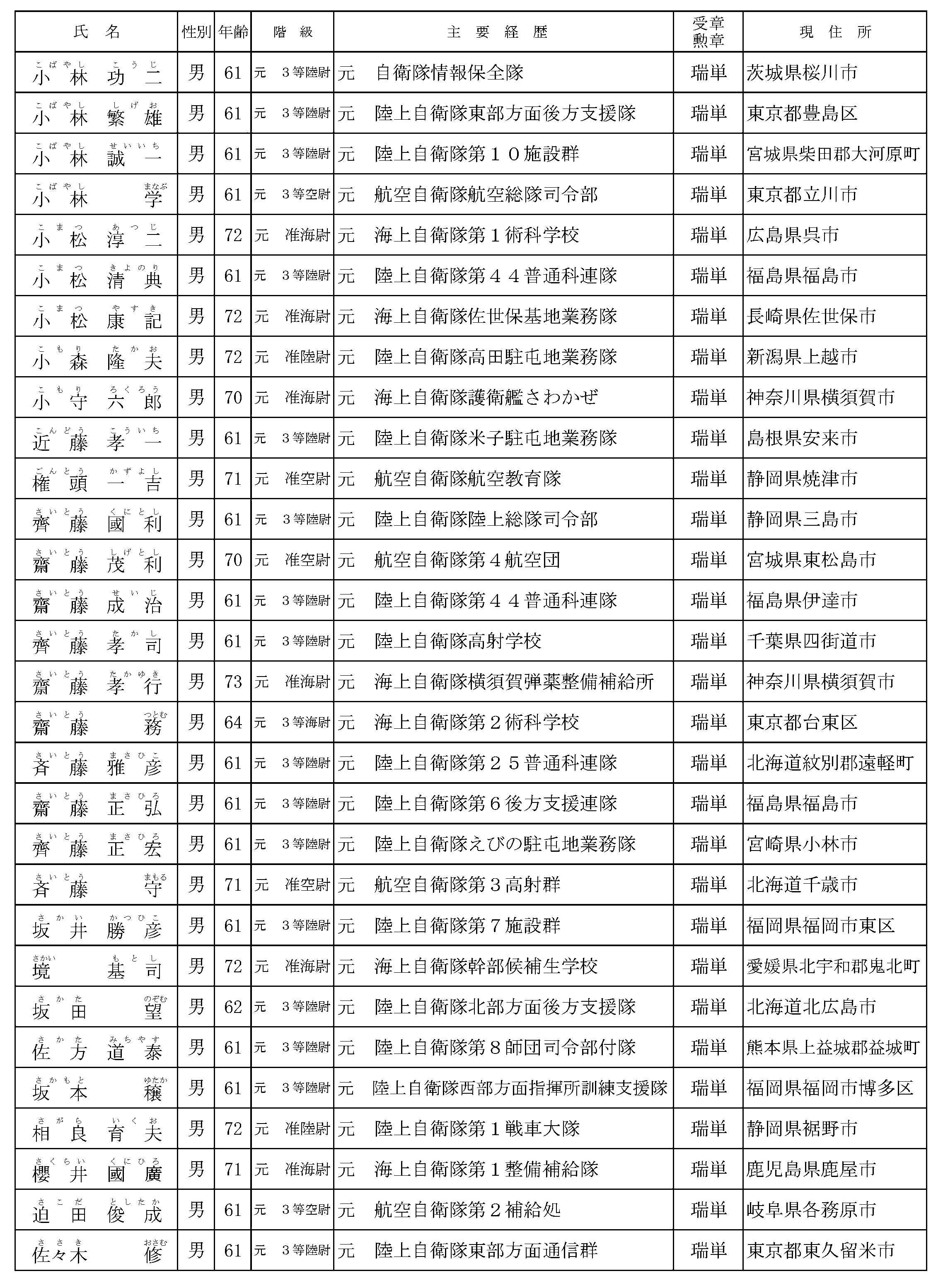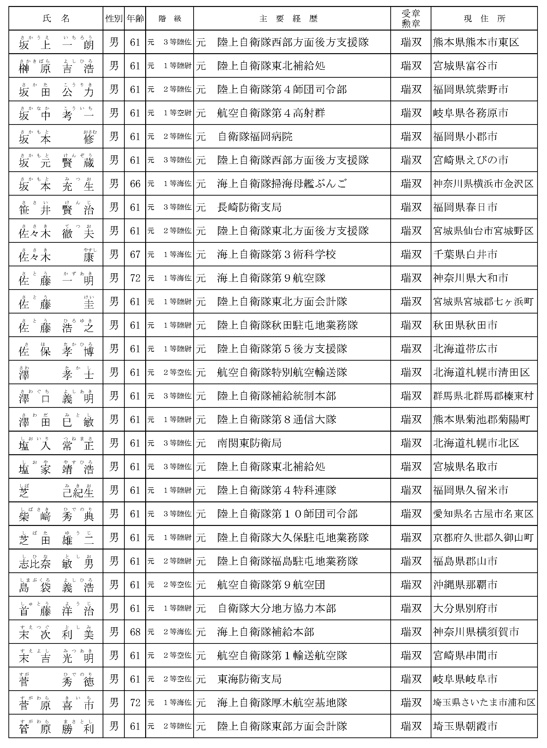 → 防衛省 第46回危険業務従事者叙勲受章者名簿(PDF)