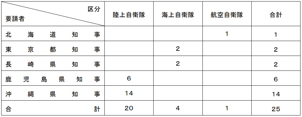 | 月日 | 要請者 | 区間 | 実施部隊 | 機種等 |
