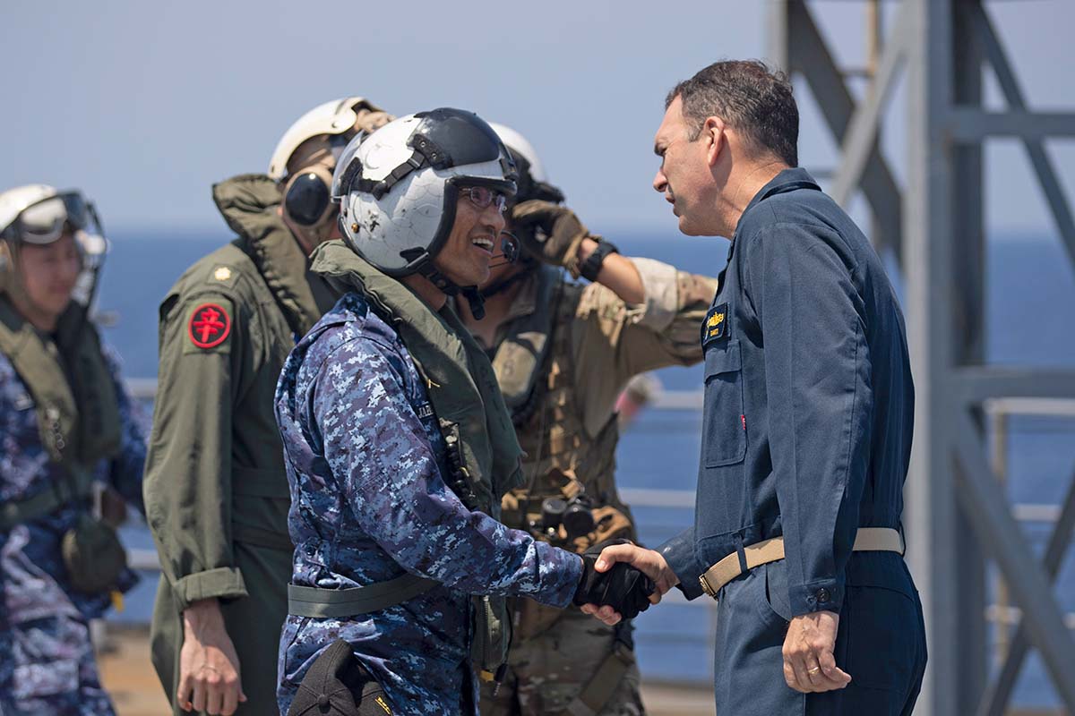 4月15日から17日にかけて、海上自衛隊のあさひ型護衛艦「あさひ」(DD 119)と「ブルー・リッジ」は、スールー海およびフィリピン海で共同航行を行った。4月16日、ハニフィン中将は海上からヘリコプターで移動し、第7艦隊旗艦に「あさひ」の幹部を迎えた。
