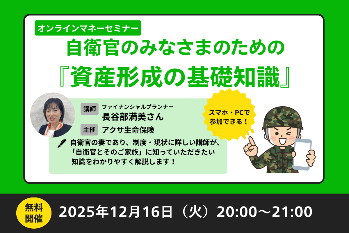 【無料セミナー】自衛官のための『資産形成の基礎知識』\自衛官&ご家族の方におすすめ!/