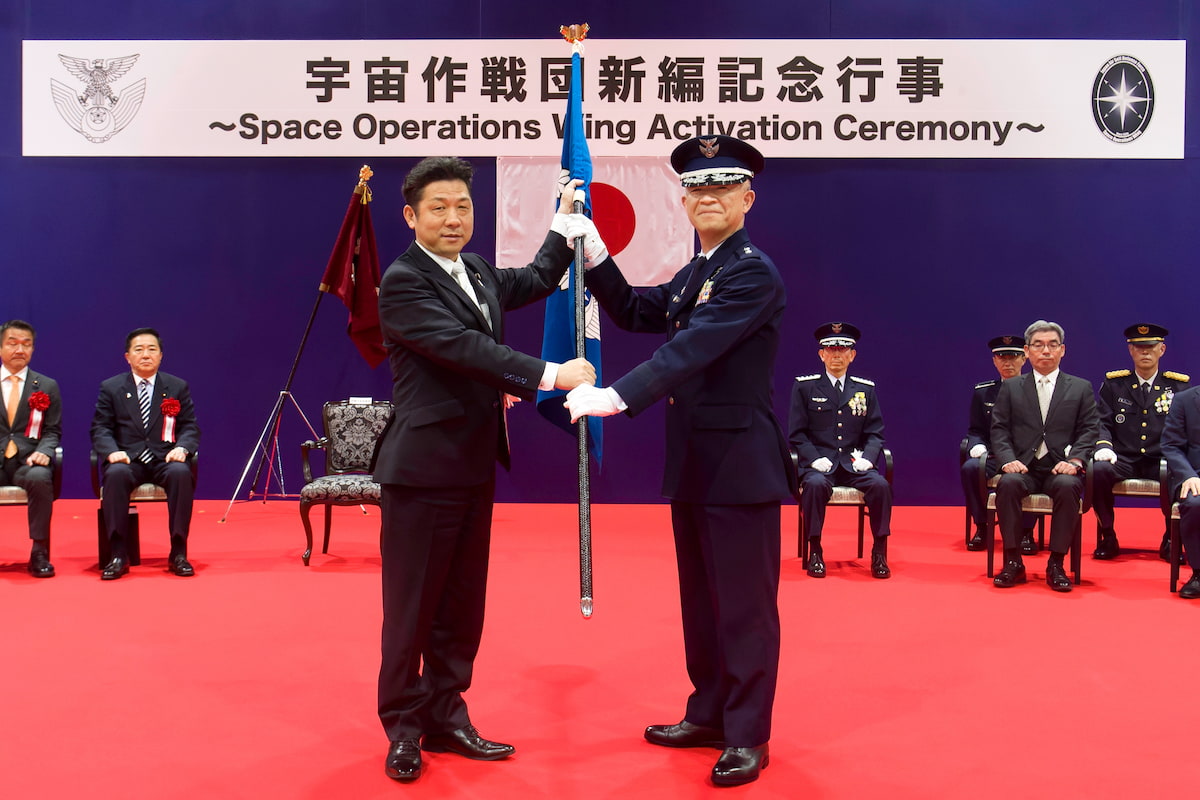 航空自衛隊は令和8(2026)年3月28日(土)、府中基地に司令部を置く宇宙作戦群を改編して、新たに宇宙作戦団を新編したことに際し、新編記念式典を執り行った。